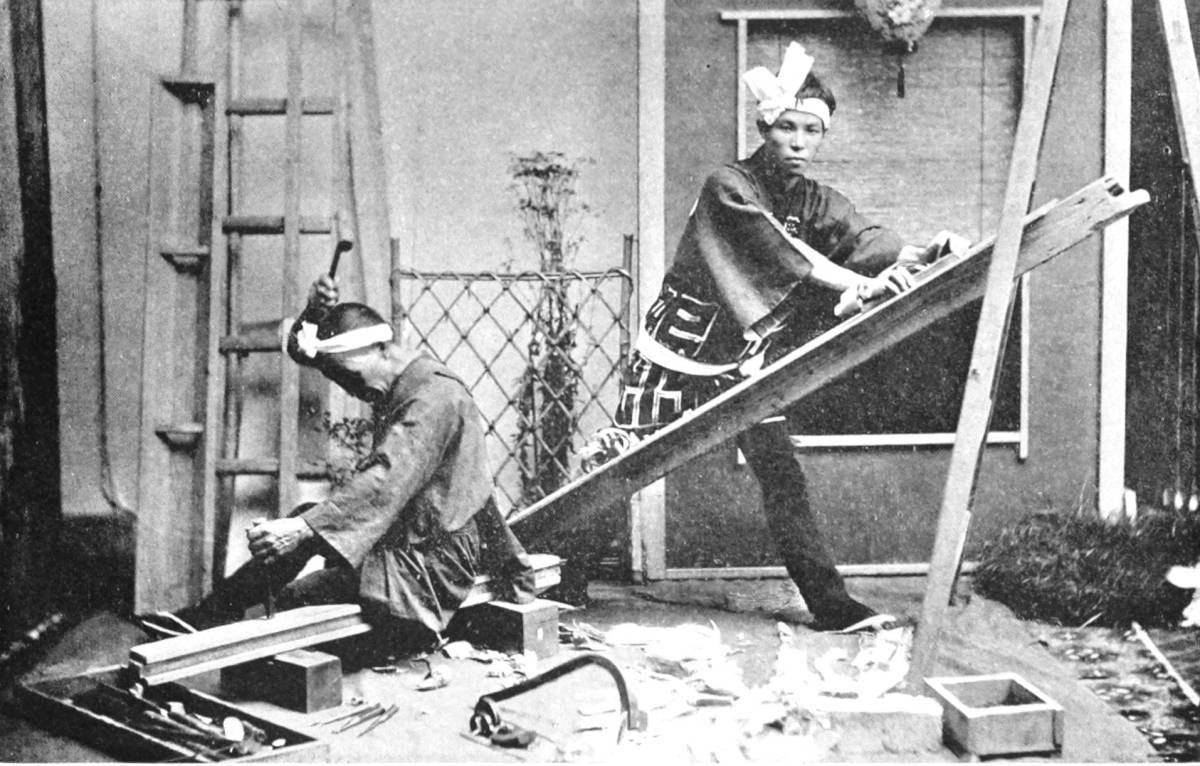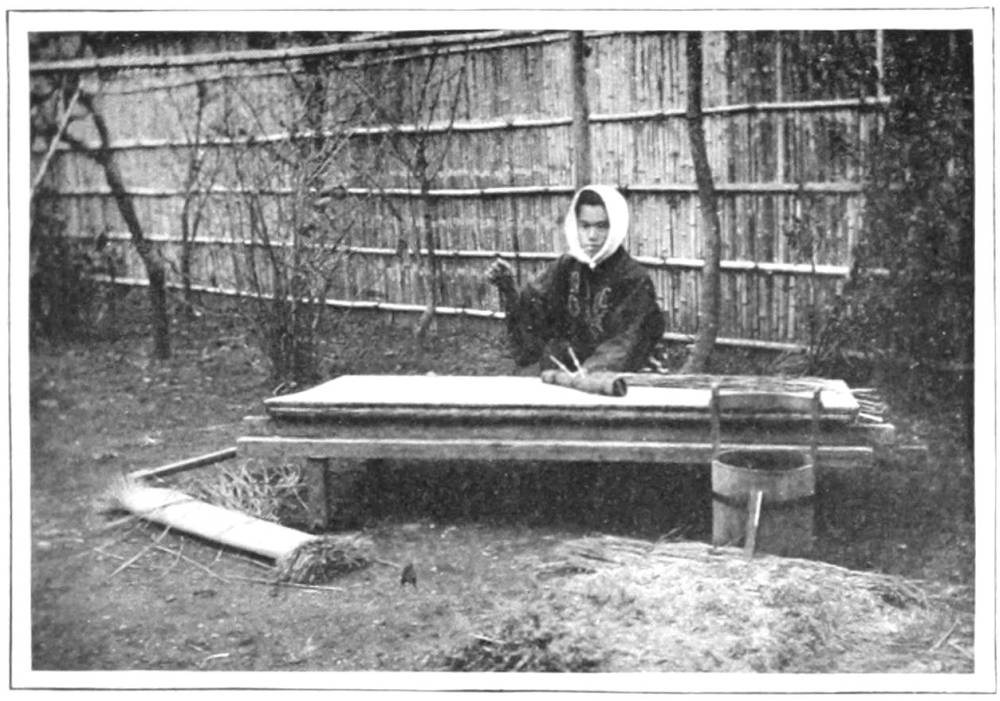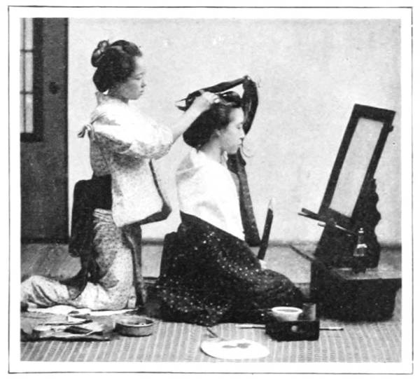 [64] The bosom of the gown is also used for the same purpose. For pocket-handkerchiefs, the Japanese carry about them a supply of small, square bits of soft paper, which they throw away as they use them.