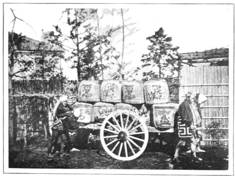 [92] “The Japanese radish,” says Golownin, “is in form and taste very different from ours. It is thin and extremely long. The taste is not very acrid, but sweetish, almost like our turnips. Whole fields are covered with it. A great part of the crop is salted, the remainder is buried in the ground for winter, and boiled in soup. Not even the radish-leaves remain unused; they are boiled in soup, or salted and eaten as salad. They manure the radish fields with night-soil; this we ourselves saw at Matsumae.”