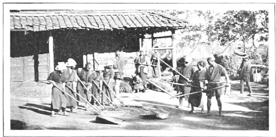 [60] It would take a thousand of the ordinary Japanese mats to cover such a floor; but Thunberg says the mats upon it were of an extra size.