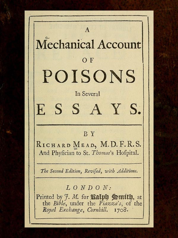 A Mechanical Account of Poisons in Several Essays, by Richard Mead (Second Edition, 1708).