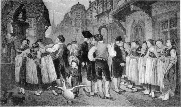 After seeking exotic subjects painting returns home, and finds amongst peasants a stationary type of life which has preserved picturesque costume.—Munich: The transition from the military picture to the painting of peasants.—Peter Hess, Heinrich Bürkel, Carl Spitzweg.—Hamburg: Hermann Kauffmann.—Berlin: Friedrich Eduard Meyerheim.—The influence of Wilkie, and the novel of village life.—Munich: Johann Kirner, Carl Enhuber.—Düsseldorf: Adolf Schroedter, Peter Hasenclever, Jacob Becker, Rudolf Jordan, Henry Ritter, Adolf Tidemand.—Vienna: Peter Krafft, J. Danhauser, Ferdinand Waldmüller.—Belgium: Influence of Teniers.—Ignatius van Regemorter, Ferdinand de Braekeleer, Henri Coene, Madou, Adolf Dillens.—France: François Biard | 140 |