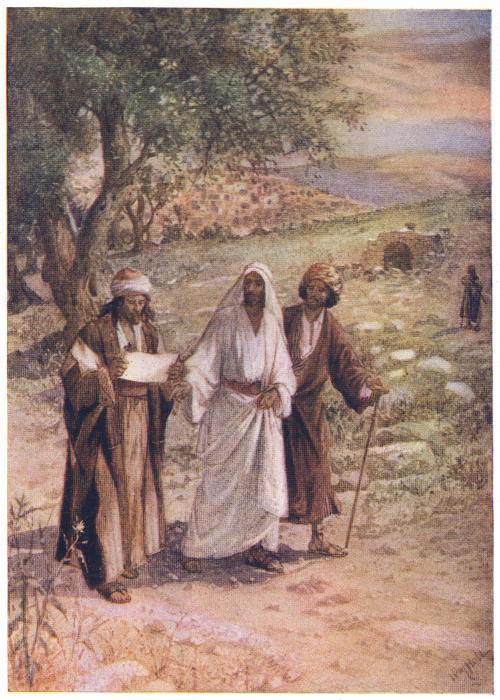 Let us look now at the facts that are told us about Gethsemane. It is a fact that there was such a place as Gethsemane, near Jerusalem, when Jesus was on earth, and that there is such a place there now. It is a fact that Gethsemane was a garden or orchard of olive trees then, and so it is still. Everyone who goes to Jerusalem is sure to visit this spot, because it is so sacred to all Christian hearts on account of its connection with our Saviour’s sufferings. The side of the Mount of Olives on which Gethsemane stands is dotted over with olive trees. A portion of the hill has been enclosed with stone walls. This is supposed to be the spot where our Lord’s agony took place. Inside of these walls are eight large olive trees. They are gnarled and crooked, and very old. Some suppose they are the very trees which stood there when Jesus visited the spot, on the night in which he was betrayed. But this is not likely. For we know that when Titus, the Roman general, was besieging Jerusalem, he cut down all the trees that could be found near the city. But the trees now there have probably sprung[4] from the roots of those that were growing in Gethsemane on this very night.