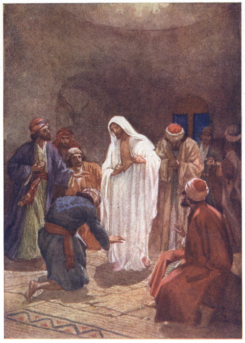 Some years ago, there was a good Christian lady in England who had taken into her family a deaf and dumb boy. She was anxious to teach him the lesson of Gethsemane and Calvary; that Christ had suffered and died for our sins. Signs and pictures were the only means by which she could teach him. So she drew a picture of a great crowd of people, old and young, standing near a deep, wide pit, out of which smoke and flames were issuing, and into which they were in danger of being driven.[13] Then she drew the figure of one who came down from heaven, representing Jesus, the Son of God. She explained to the boy that when this person came, he asked God not to throw those people into the pit, because he was willing to suffer and to die for them, that the pit might be shut up and the people saved.