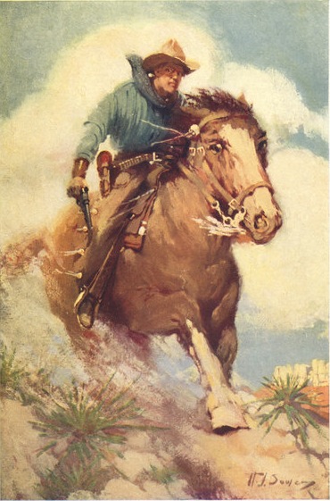 “I’m going out to the fences meself,” he said, shortly. Then he went on: “There’s a dozen an’ more three-year-olds in the corrals needs bustin’. You best set two 14 o’ the boys on ’em. Ther’s a black mare among ’em. I’ll get you to handle her yourself. I’m goin’ to ride her, an’ don’t want no fool broncho-buster tearing her mouth out.”