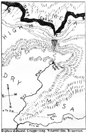 When at last the announcement was made that the engineer had come out of his swoon and probably would live, the sheriff and all the members of the posse not employés of Knowles prepared to ride down to Plum Creek ranch for the night. The cowman ordered his men to go down with the party, to water the 391 horses and bring back food and water for the camp. The surgeon had said that his patient could not be moved for many days.