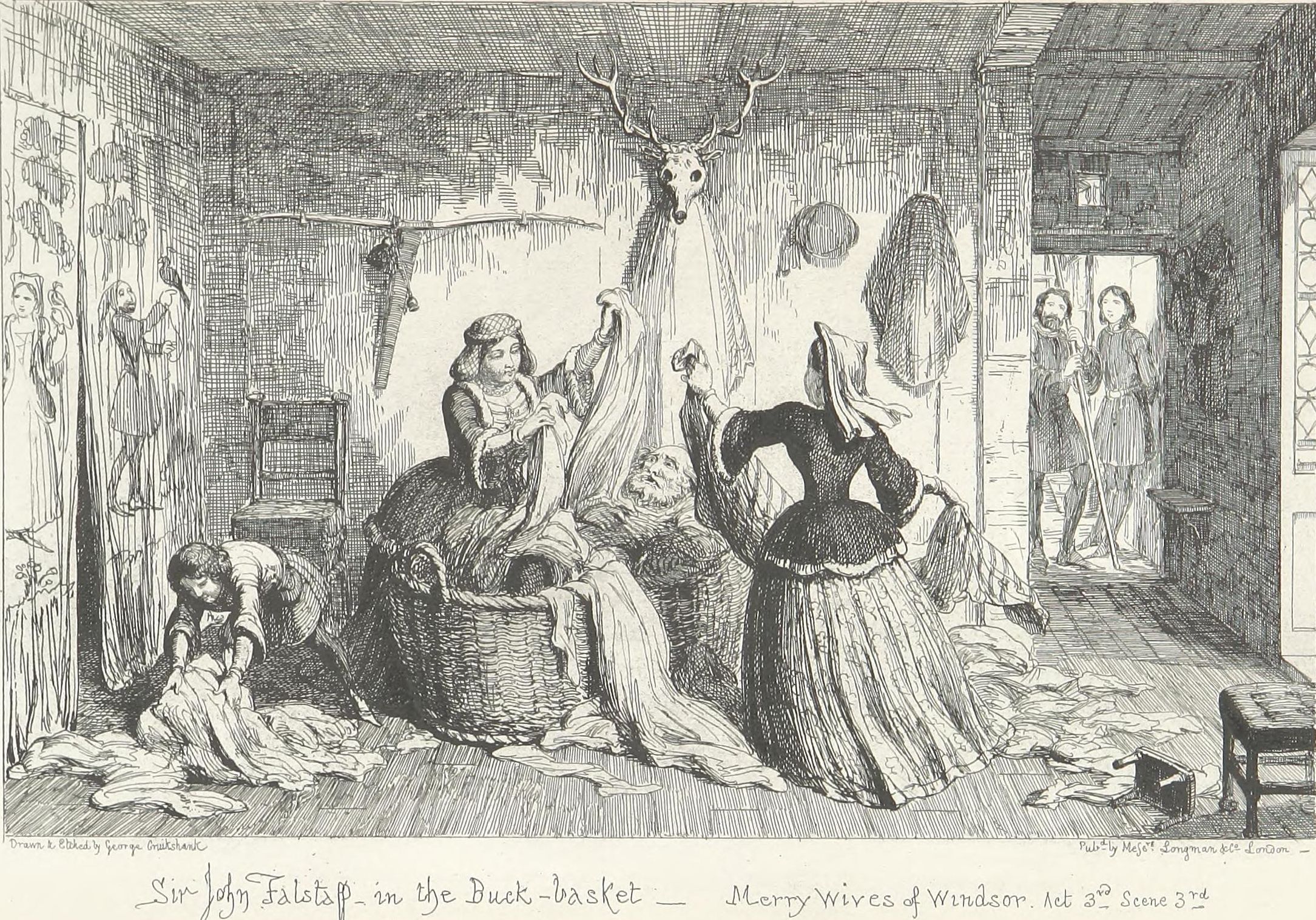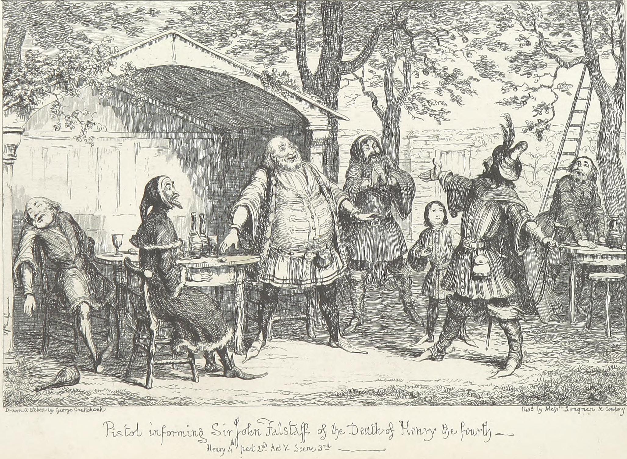 I repeat that I have no heart to dwell upon these painful details. Shakspeare has not scrupled to particularise them, and the curious are referred to his able but pitiless pages. My good friend GEORGE CRUIKSHANK also—an amiable man in the social relations of life, but who when there is a stern truth to be recorded pictorially, has no more feeling than the sun peering through a photographic lens—has added his testimony to the principal features of the case. Let my feelings be spared—for I sympathise with poor Sir Jack, and, with all his faults, love him.
