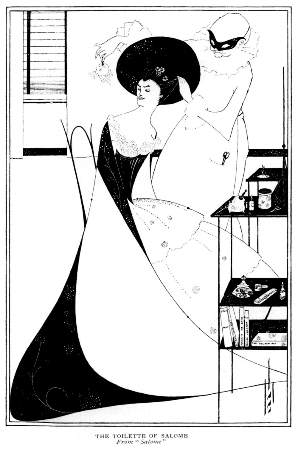 XXIII. The Coiffing. This and the following design accompanied Aubrey Beardsley's "Ballad of a Barber." The Coiffing was republished in the Idler Magazine, March 1897, and in "Fifty Drawings" and "Later Work." (Property of Messrs Obach & Co.)