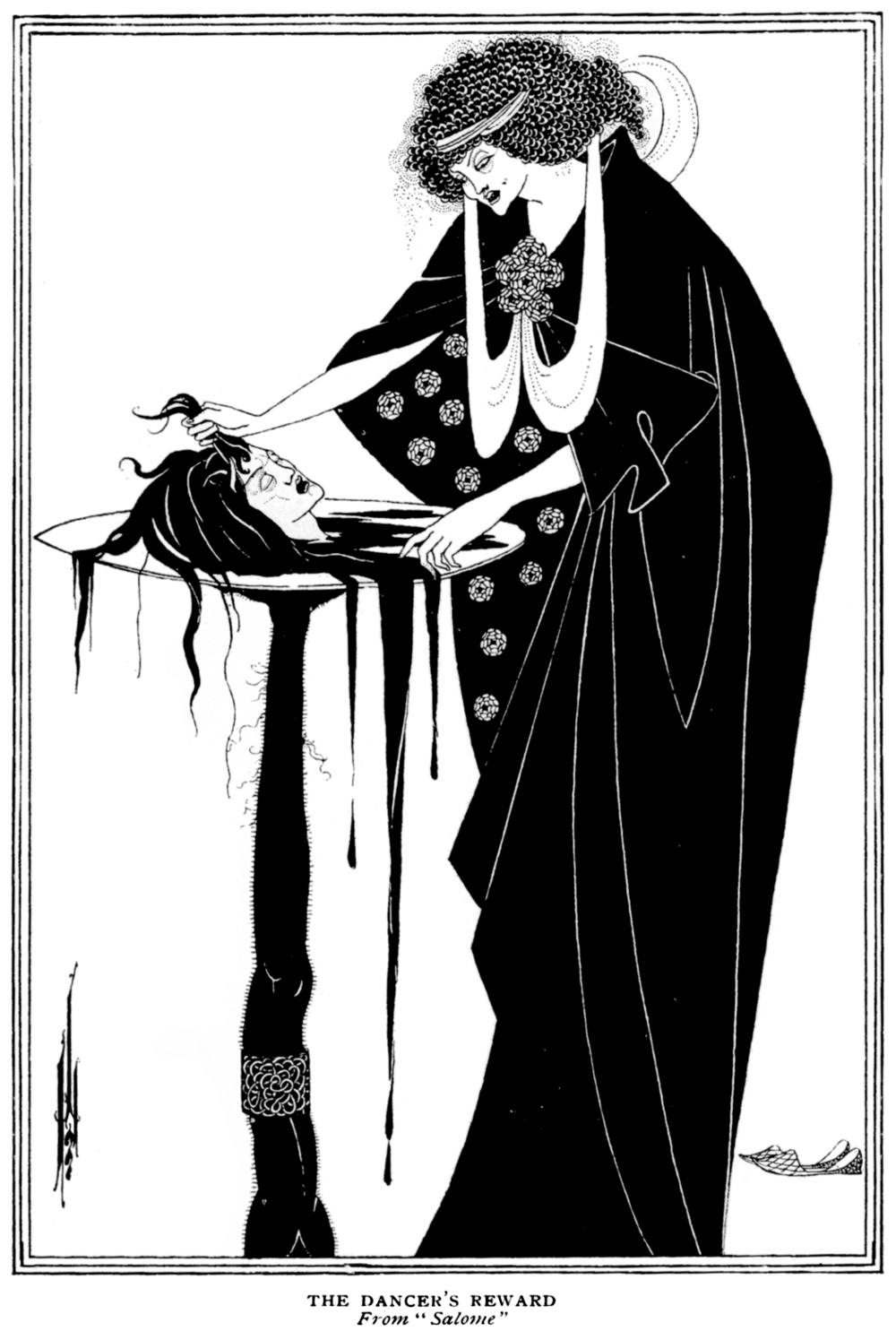 Applying the epithet "original" to an art so intensely reminiscent, so ingeniously retrospective, [55] might seem paradoxical to those unacquainted with Beardsley's more elegant achievements. His is not the originality of Corot and Whistler, with a new interpretation of nature, another scheme of art and decoration, but rather the scholarly originality of the Carracci—a scholarship grounded on a thousand traditions and yet striking an entirely new note in art. In his imagination, his choice of motive, his love for inanimate nature, his sentiment for accessory,—rejected by many modern artists, still so necessary to the modern temper,—his curious type, which quite overshadowed that of the pre-Raphaelites, the singular technical qualities at his command, Beardsley has no predecessors, no rivals. Who has ever managed to suggest such colour in masses of black deftly composed? Reference to the text is unnecessary to learn that the hair of Herodias was purple. His style was mobile, dominating over, or subordinate to the subject, as his genius dictated. He twisted human forms, some will think, into fantastic peculiar shapes, becoming more than romantic—antinomian. He does not appeal to experience but to expression. The tranquil trivialities of what is usually [56] understood by the illustration of books had no meaning for him; and before any attempt is made to discriminate and interpret the spirit, the poetical sequence, the literary inspiration which undoubtedly existed throughout his work, side by side with technical experiments, his exemption from the parallels of criticism must be remembered duly.