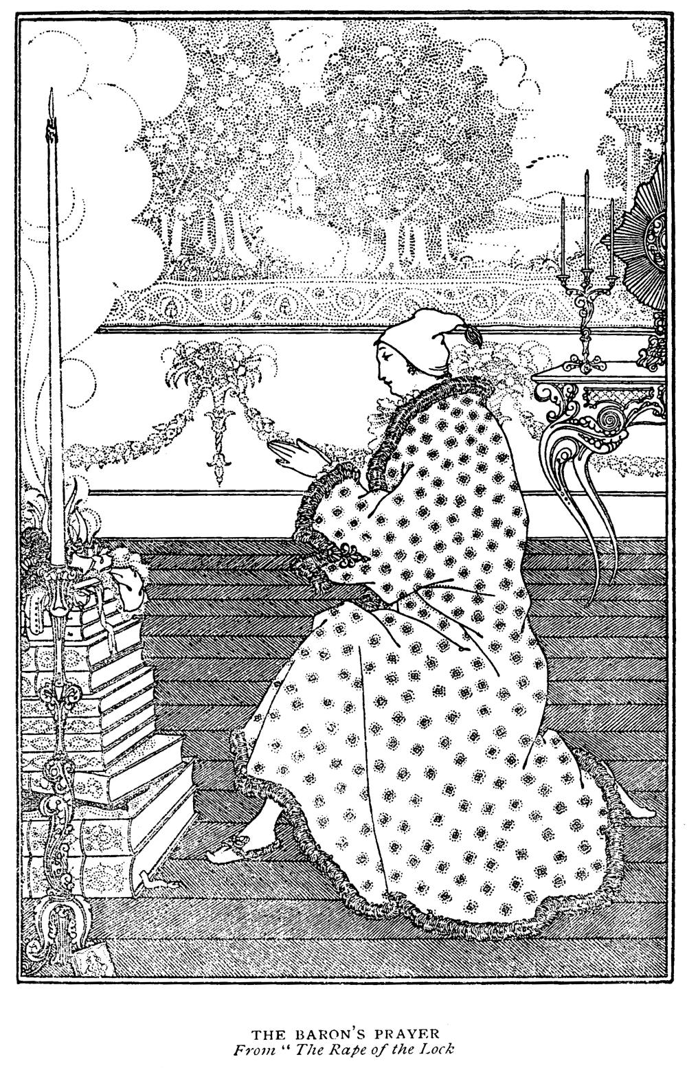 To estimate the art of Aubrey Beardsley is not difficult. That his drawings must excite discussion at all times is only a proof of their [31] lasting worth. They can never be dismissed with unkindly comment, nor shelved into the limbo of art criticism which waits for many blameless and depressing productions of the eighteenth and nineteenth centuries. Among artists and men of letters no less than with that great inartistic body, "the art-loving public," Aubrey Beardsley's name will always call forth wonder, admiration, speculation, and contempt. It should be conceded, however, that his work cannot appeal to everyone; and that many who have the highest perception of the beautiful see only the repulsive and unwholesome in the troubled, exotic expression of his genius. Fortunately, no reputation in art or letters rests on the verdict of majorities—it is the opinion of the few which finally triumphs. Artists and critics have already dwelt on the beauty of Aubrey Beardsley's line, which in his early work too often resolved itself into mere caligraphy; but the mature and perfect illustrations to "Salomé" and "The Rape of the Lock" evince a mastery unsurpassed by any artist in any age or country. No one ever carried a simple line to its inevitable end with such sureness and firmness [32] of purpose. And this is one of the lessons which even an accomplished draughtsman may learn from his drawings, in any age when scraggy execution masquerades under impressionism. Aubrey Beardsley did not shirk a difficulty by leaving lines to the imagination of critics, who might enlarge on the reticence of his medium. Art cant and studio jargon do not explain his work. It is really only the presence or absence of beauty in his drawing, and his wonderful powers of technique which need trouble his admirers or detractors. Nor are we confronted with any conjecture as to what Aubrey Beardsley might have done—he has left a series of achievements. While his early death caused deep sorrow among his personal friends, there need be no sorrow for an "inheritor of unfulfilled renown." Old age is no more a necessary complement to the realization of genius than premature death. Within six years, after passing through all the imitative stages of probation, he produced masterpieces he might have repeated but never surpassed. His style would have changed. He was too receptive and too restless to acquiesce in a single convention.