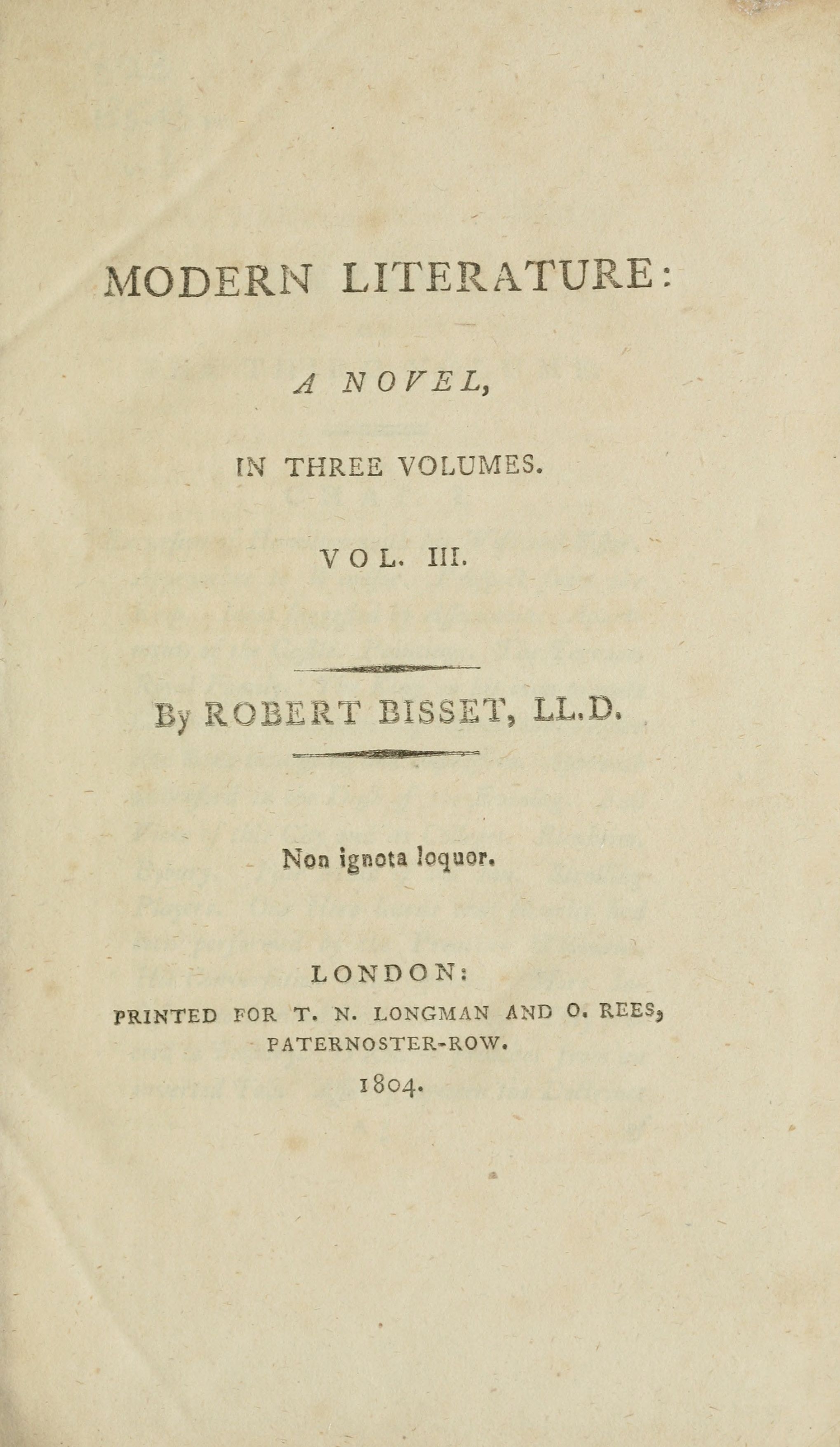 Another sets out from a point somewhat[152] more akin to learning, begins as porter’s boy in the vestibule of the muses, or to speak less figuratively, opens as a printer’s devil. He takes one of two courses, or both, aspires at being a compositor, or a reader. In such occupations, if tolerably sharp, he acquires a much better education than many professed men of letters; he becomes acquainted with spelling, and even receives an insight into higher parts of grammar; is tolerably correct in ordinary language. A person of this kind, if he be steady, becomes extremely useful in his own line; but should he not be steady, he has recourse to the profession of letters, offers his services to a magazine, and not for mere collections of occurrences, like the recorder of run-away horses, and boxing matches, but deals in selections, and also originals. He becomes a literary critic and a reviewer, nay, even rises to[153] be an editor, and gradually acquires such celebrity in that occupation, that he is run upon, and perhaps distinguished by the title of Editor Atall. Somewhat higher than these in their outset, are persons who having been bred to learned professions, especially law and medicine, in which it is very difficult to get on without ability, knowledge, and skill, find things will not answer, and being unoccupied by briefs or consultations, betake themselves to the profession of letters. A man has been called to the bar, but finds that at Westminster-hall, though many are called but few are chosen, therefore he takes to the instruction of mankind through newspapers and magazines. A professor of medical art and science becomes a doctor of medicine, but finds his degree does not procure a demand for his prescriptions, therefore he offers his advice, not to the sick,[154] but to those who are in health. Numerous are the recruits in the literary ranks, from counsellors and physicians, who, unable to procure clients and patients, have sought refuge in the occupation of authors. It may be naturally asked, Are not unsuccessful clergymen in the same situation? To this the answer is obvious, and indeed trite. Success, good or bad, is not in a clergyman the consequence of qualifications, good or bad, with the same probability as in the other learned professions; the recovery or defence of our property we will not trust to an insufficient lawyer; the recovery of our health we will not trust to an incapable physician; but our spiritual concerns we readily entrust, without much investigation of the competency of the guide. High fees are bestowed on the most eminent professional men, but rich livings are often[155] bestowed upon blockheads, and besides, clergy who are not able to rise by their abilities, and have not interest to compensate the deficiency, have a never-failing resource in becoming masters of academies. Another reservoir, that for many years has diffused plentiful supplies of authors, is dissent from the established church. Scarcely a dissenting minister is to be found, who is not a professed author. Of these, two were very able and learned men, and a few others respectable, but much the greater number are far from having any pretensions to genius and erudition, and most of them, whether able or weak, the votaries of visionary reveries, instead of solid and substantial wisdom; and no one class has been so productive of incapable, illiterate, and trifling authors, as the non-conformists. In addition to these, were your sentimental writers, who regarded[156] the supreme happiness of mankind, as consisting in the possession and gratification of fine sensibility, who decried all restraint as irksome to the feelings; these figured away in plays and novels, and poems and fables and tales, abounded in prettinesses and pathos, and many other qualities, and merely wanted sense, virtue, and piety. Instances of these and many other kinds, will readily suggest themselves, and scarcely one of the literary quacks, but had knots of admirers, who regarded him or her as a shining light, and implicitly followed as a guide. In such a predisposition for the reception of nonsense, and especially innovating nonsense, Tom Paine’s book was wonderfully adapted for circulation.