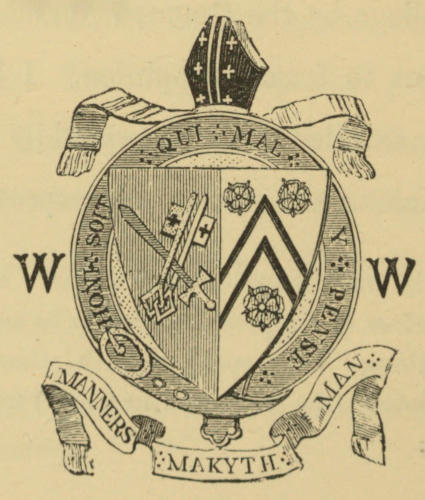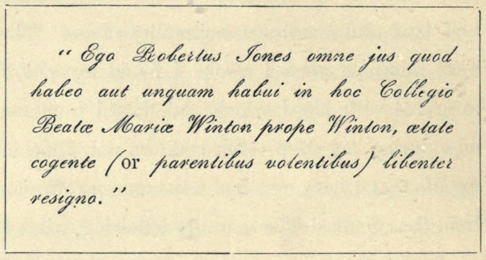 [12] This must not be confounded with the Roll which was published every November, giving a list of the entire establishment of the College, commencing with the Warden, Head master, (Informator,) Second master, (Hostiarius,) the ten fellows, three chaplains, the under masters, the seventy scholars, the commoners, and the choristers.