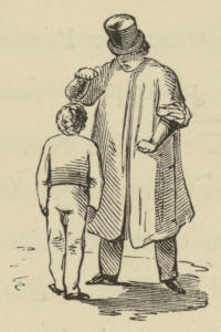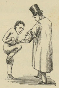 On these occasions, the most tremendous lies were sometimes considered justifiable:—e.g., The Doctor comes suddenly round a corner, and finds Tibbs mopping the rosy fluid from his nose with a rueful countenance, having just received a sharp back-hander from one of his lords and masters, whose basin he has broken:—