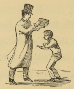 [7] This refined method of tossing up was arranged as follows:—A certain letter (say the first of the third line) was fixed on, and each boy turned over a page in succession; he who turned over that one in which the corresponding letter was nearest to A, won; and vice versâ.