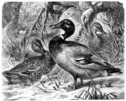 Some of our tribe have been made tame like you (but I hope you are not so false-hearted), and then their masters feed them plentifully, in a place contrived on purpose, with a narrow entrance, with which these traitor ducks are well acquainted, so that they can pass in and out at a place we strangers should never have thought of. They are sent out in the dusk of the evening, when they soon join with large companies of us strangers; and knowing, as they do, their way home, and that they shall find food, they set off, close at each other's tails, along a ditch, or watercourse, and we fools follow them.