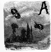 I cannot exactly tell what happened before I came out of the shell; but, from circumstances, I can give you some information. When I came to life, amongst some scores of other little merry yellow creatures, I found myself, and all of us, enclosed in a thing, through which we, with our eight eyes, could see very well, but could not instantly get out. I soon perceived that we, in the egg state, wrapped in a white bag, as you left us, had been put into a thing called a bottle, by one of those great creatures whom we always call striders; but this was a particular one of that tribe, who wanted to play tricks with us—one whom they would perhaps call a philosopher.[1] Well, his own sense (if he had any) told him that we could not live without air; so he left the cork out, and went about his business; no doubt of much less consequence than the lives of all us prisoners—but that they do not mind. But how long were we prisoners? Why, as soon as ever we were out of the shell we began to spin, and linked our webs so thick together that the philosopher's bottle would hold us no longer. We climbed out in a crowd, and spread our webs over the room, up to the very ceiling. I shall never forget how the great booby stared when he saw us all climbing up our own rope-ladders! I wonder if those great creatures are not sometimes caught in webs spun by their fellow-creatures, and whether they are not sometimes put by hundreds into a bottle without possessing any means of escape? But I am but a child, and must live and learn before I talk more freely. Long life to you, dear mother, and plenty of flies.