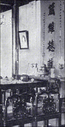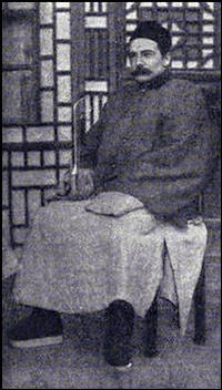 He only slightly inclined his head to Hu, took no notice of me, and, ignoring Chinese ceremony, proceeded at once to the highest seat in the little room, and seated himself in the intensely stiff attitude of the god of war one usually sees in a Chinese temple. Hu seemed completely taken aback at this insolence,[12] and allowed the ruffian to remain in the seat of honor throughout the interview.