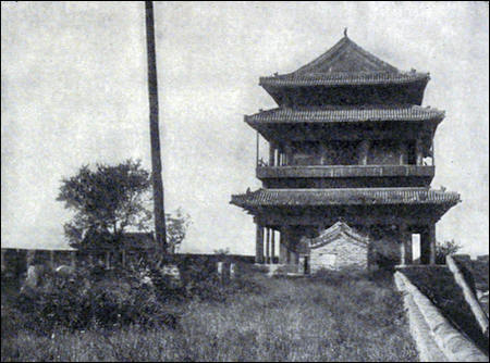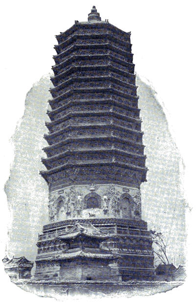 In and around Peking are to be seen many specimens of noble architecture; among which is this beautiful Pagoda, built hundreds of years ago. Such buildings are not erected now, and in some instances they are found standing almost solitary and alone, miles from any great city.