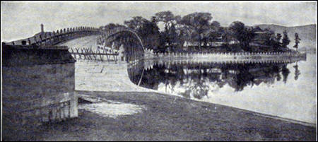 A beautiful bridge, which would be a credit to any city. Marco Polo, the great traveler, nearly a thousand years ago described a similar bridge, thus showing how old is Chinese civilization compared with our own.