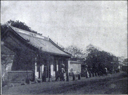 Upon our alighting from the cars we were met by a sub-official from the camps, and were accompanied by him, and about twenty Kansu soldiers, to the entrance to the railroad bridge, the site of the riot two days before.