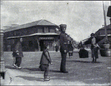 Mr. Cox stated that he and his two guests had gone shortly after tiffin on a trolley to Captain Norregaard’s residence, near the bridge, and having added Norregaard to their party, proceeded on foot to the bridge. Near the eastern entrance stood a party of Kansu soldiers, numbering fifty or more, who, upon the approach of the foreigners, saluted them with offensive epithets, in which the well-known “yang kuei tzu” or “foreign devil” was frequently repeated.