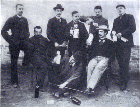 As they again neared the eastern side, they saw the same gang of ruffians awaiting them, with stones in their hands, and, upon their arriving within range, were saluted with a volley of stones, many of which took effect. They valiantly charged upon the men, and Cox, being rather severely hit, and spying out the man who had struck him, chased him right into the crowd and knocked him down with a terrific blow. As Cox stands six feet four, and is a remarkably muscular man, this fellow’s punishment was severe.