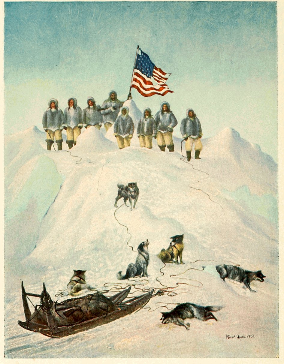 COMMANDER ROBERT E. PEARY PLANTING THE AMERICAN FLAG LATITUDE 87° 6â², APRIL 21, 1906