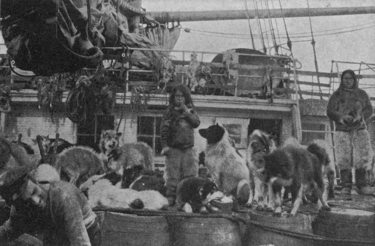 | eskimo dogs of the expedition (246 in all) on small island. etah fjord | 74 |