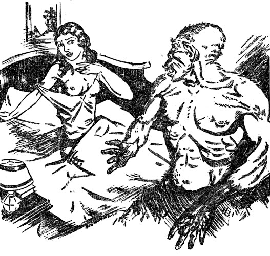 "A black thing," she muttered. "A horrible faceless black thing that mows and mumbles and paws over me with apish hands. I dream of it every night. And in the daytime I try to kill the only man I ever loved. I'm going mad! Maybe I'm already crazy and don't know it."