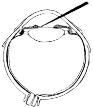A Comparison of the Corneal and Scleral Routes for Operation.—It has been already shown that the Indian operators of the present day vary in their technique, some attacking the lens from in front through the cornea, and others from90 behind through the sclera. It is interesting to note that there is a similar difference in practice amongst those of the modern surgeons who have adopted couching in special cases. There can, however, be no doubt that the weight of opinion among the old writers was all in favour of the posterior operation; and Mackenzie, whose practical experience was, we may hope, vastly greater than that of any modern surgeon, summed up the position in these words: “In this way (i.e., through the cornea) neither operation (depression or reclination) can be satisfactorily performed.” We may close this subject with another word of warning to any who are inclined to favour the couching of lenses in selected cases. From the time of Celsus onwards, surgeons who have had large experience in couching have warned their disciples that it is an operation much more easy to undertake than to carry to a successful technical issue, and have cautioned them against venturing on it until they have seen it performed many times at the hands of an expert. One cannot conclude better than by a quotation from the writings of Lieut.-Colonel Henry Smith, who has had very large opportunities of observing the results of cataract couching. He is known to be a very skilful operator, and one, therefore, who is little likely to exaggerate the difficulties of any ophthalmic procedure, yet he writes: “It is no easy matter to completely dislocate the lens, and, in my observation, the partial dislocation is more frequent than the complete in the hands of adepts of the art.”