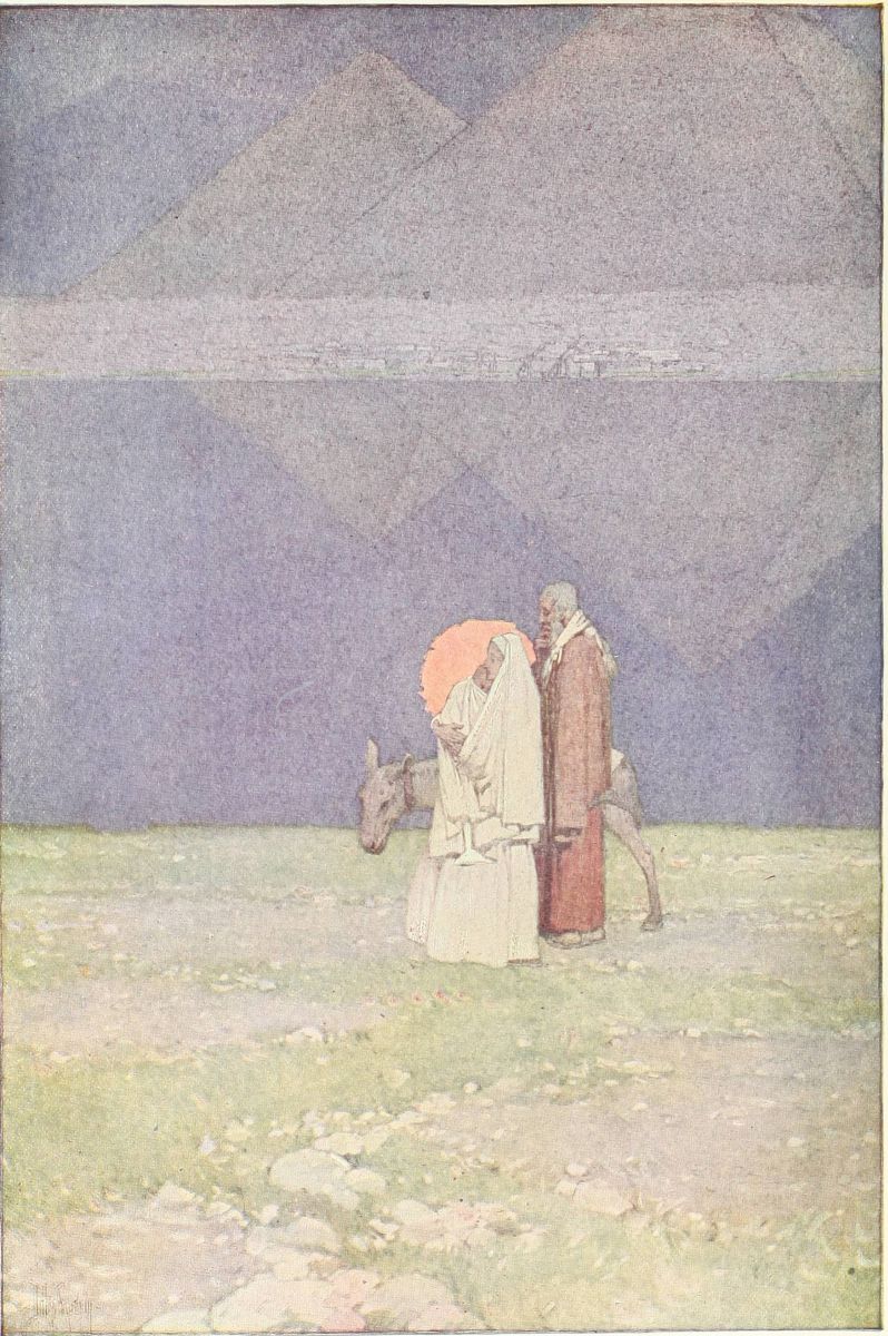 And that enormous face, with the stains of stormy red still adhering to its cheeks, grew dark as the darkness closed in, turned brown as a fellah’s face, as the face of that fellah who whispered his secret in the Sphinx’s ear, but learnt no secret in return; turned black almost as a Nubian’s face. The night accentuated its appearance of terrible repose, of superhuman indifference to whatever might befall. In the night I seemed to hear the footsteps of the dead—of all the dead warriors and the steeds they rode, defiling over the sand before the unconquerable thing they perhaps thought that they had conquered. At last the footsteps died away. There was a silence. Then, coming down from the Great Pyramid, surely I heard the light patter of a donkey’s feet. They went to the Sphinx and ceased. The silence was profound. And I remembered the legend that Mary, Joseph, and the Holy Child once{22} halted here on their long journey, and that Mary laid the tired Christ between the paws of the Sphinx to sleep. Yet even of the Christ the soul within that body could take no heed at all.