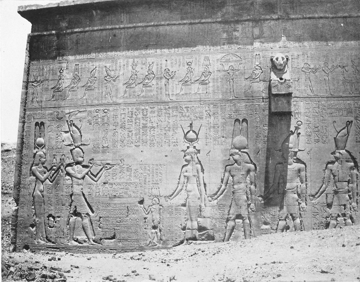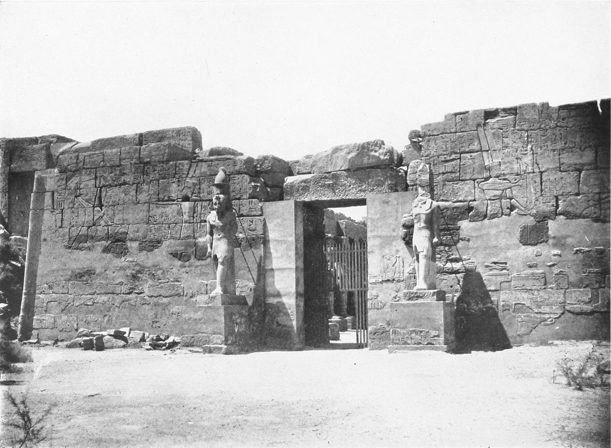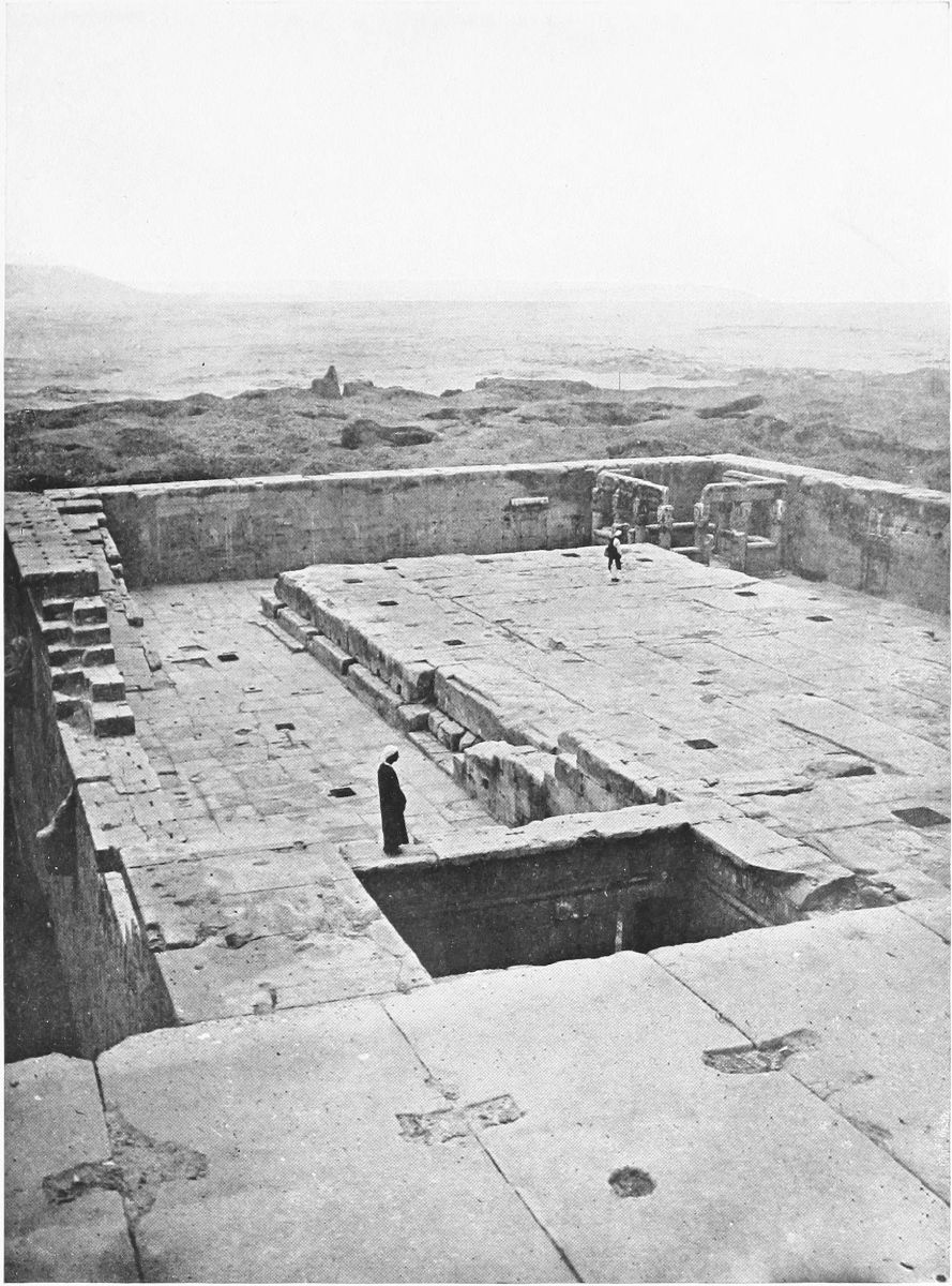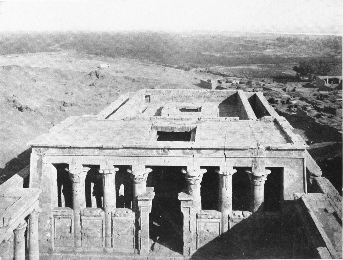 FROM Abydos, home of the cult of Osiris, judge of the dead, I came to Denderah, the great temple of the “Lady of the Underworld,” as the goddess Hathor was sometimes called, though she was usually worshiped as the Egyptian Aphrodite, goddess of joy, goddess of love and loveliness. It was early morning when I went ashore. The sun was above the eastern hills, and a boy, clad in a rope of plaited grass, sent me half shyly the greeting, “May your day be happy!”