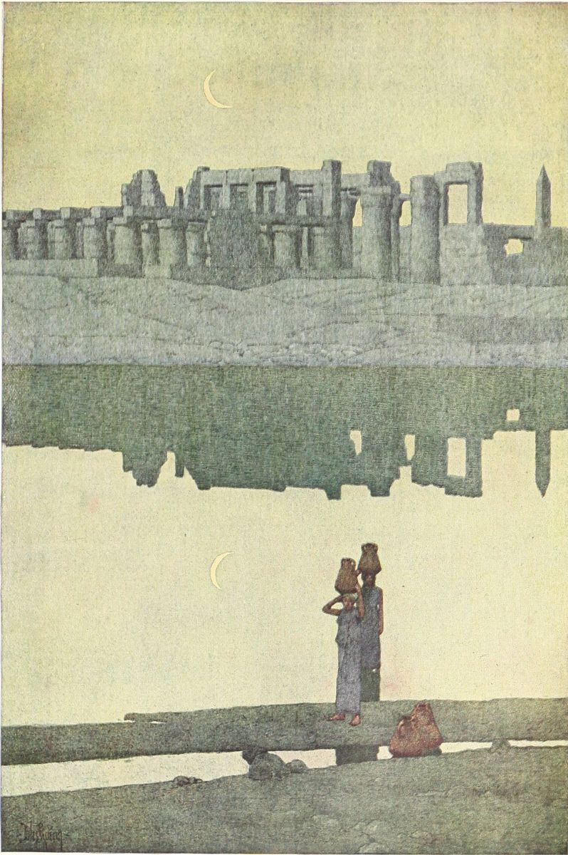 Thoth, says the old legend, traveled in the Boat of the Sun. If you would love Egypt rightly, you, too, must be a traveler in that bark. You must not fear to steep yourself in the mystery of gold, in the mystery of heat, in the mystery of silence that seems softly showered out of the sun. The sacred white lotus must be your emblem, and Horus, the hawk-headed, merged in Ra, your special deity. Scarcely had I set foot once{7}