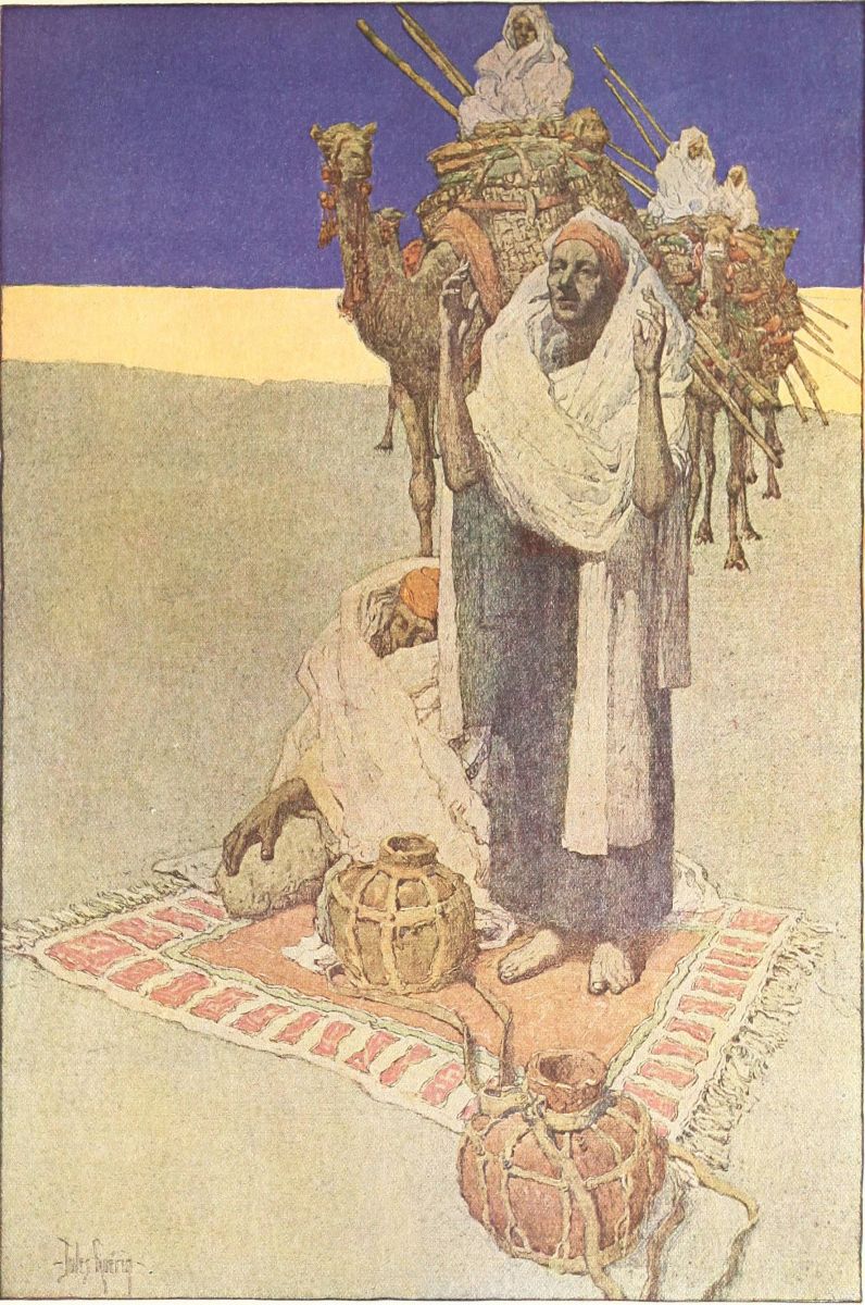 were the sleeping waters, with islands small, surely, as delicate Egyptian hands, and on the other the great desert that stretches, so the Bedouins say, on and on “for a march of a thousand days.”