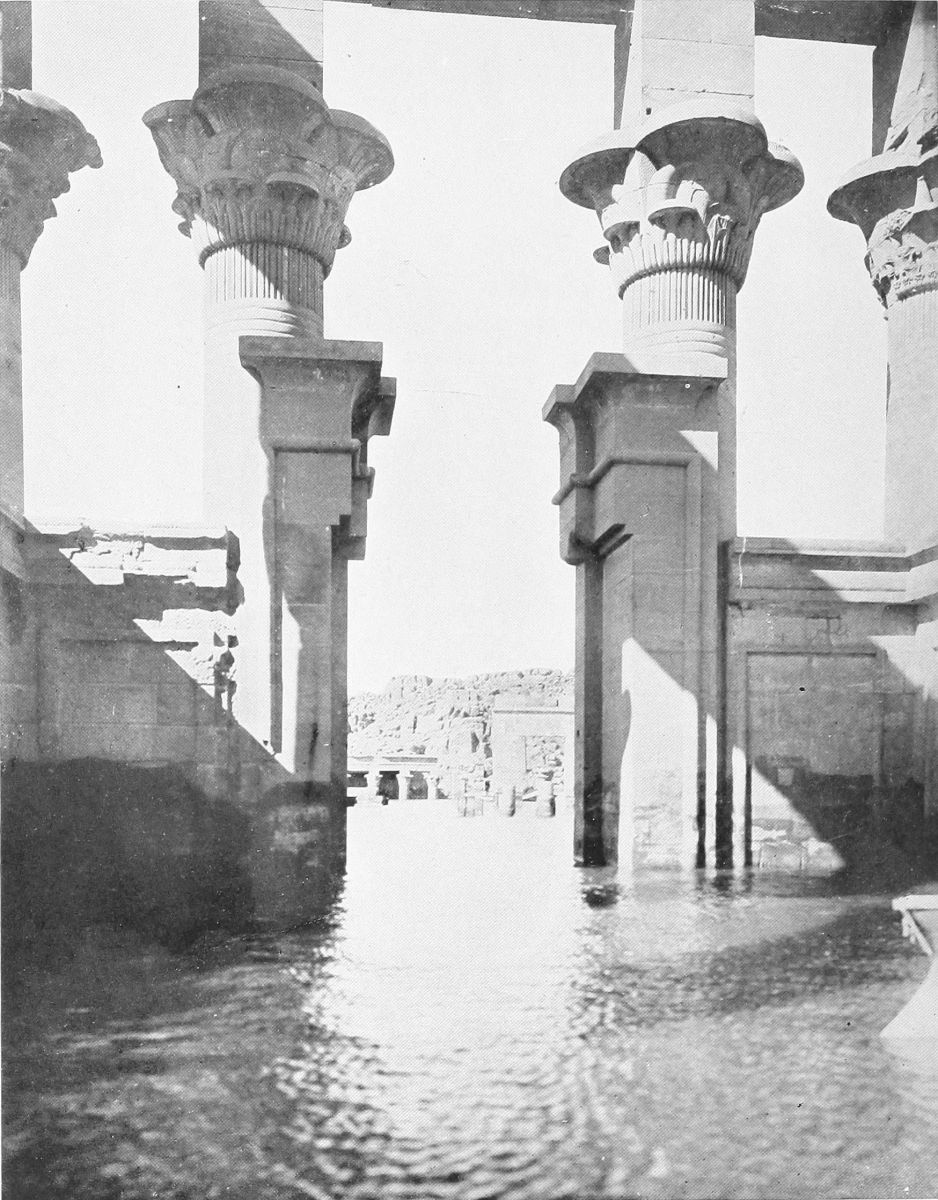 It is this chamber which always makes me think of Philæ as a lovely temple of dreams, this silent, retired chamber, where some fabled princess might well have been touched to a long, long sleep of enchantment, and lain for years upon years among the magical flowers—the lotus, and the palm, and the papyrus.