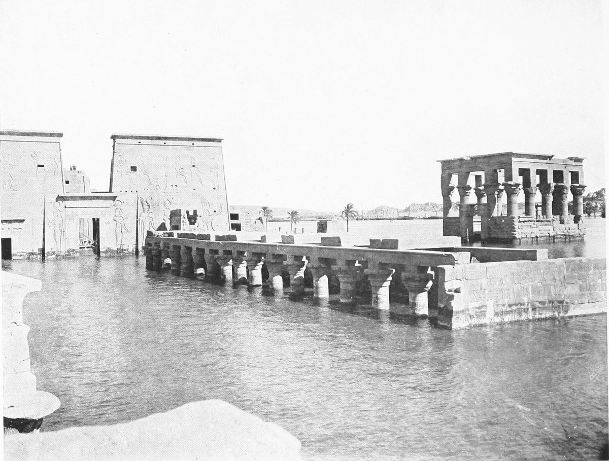 When we love anything, we love to be able to say of the object of our devotion, “There is nothing like it.” Now, in all Egypt, and I suppose in all the world, there is nothing just like Philæ. There are temples, yes; but where else is there a bouquet of gracious{236} buildings such as these gathered in such a holder as this tiny, raft-like isle? And where else are just such delicate and, as I have said, light and almost feminine elegance and charm set in the midst of such severe sterility? Once, beyond Philæ, the Great Cataract roared down from the wastes of Nubia into the green fertility of Upper Egypt. It roars no longer. But still the masses of the rocks, and still the amber and the yellow sands, and still the iron-colored hills, keep guard round Philæ. And still, despite the vulgar desecration that has turned Shellal into a workmen’s suburb and dowered it with a railway-station, there is mystery in Philæ, and the sense of isolation that only an island gives. Even now one can forget in Philæ—forget, after a while, and in certain parts of its buildings, the presence of the gray disease; forget the threatening of the altruists, who desire to benefit humanity by clearing as much beauty out of humanity’s abiding-place as possible; forget the fact of the railway, except when the shriek of the engine floats over the water to one’s ears; forget economic problems, and the destruction that their solving brings upon the silent world of things whose “use,” denied, unrecognized, or laughed at, to man is in their holy beauty, whose mission lies not upon the broad highways where tramps the hungry body, but upon the secret, shadowy byways where glides the hungry soul.