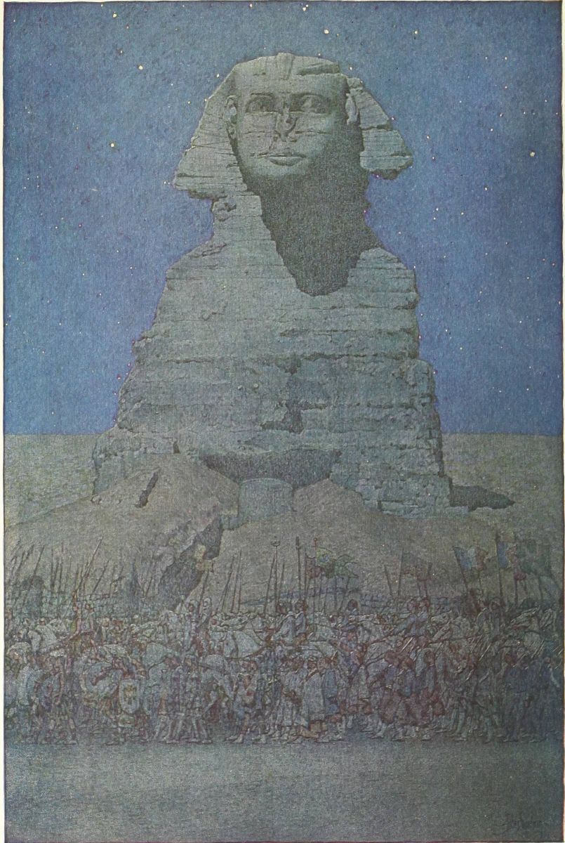 And the sunset waned, and the afterglow flamed and faded, and the clear, soft African night fell. The pilgrims who day by day visit the Sphinx, like the bird, had gone back to Cairo. They had come, as the bird had come; as those who have conquered Egypt came; as the Greeks came, Alexander of Macedon, and the Ptolemies; as the Romans came; as the Mamelukes, the Turks, the French, the English came.