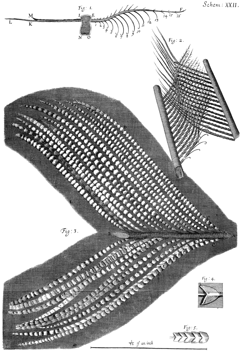 A description of the feathers and wings of this, and several other Insects. Divers Considerations about the wings, and the flying of Insects and Birds.