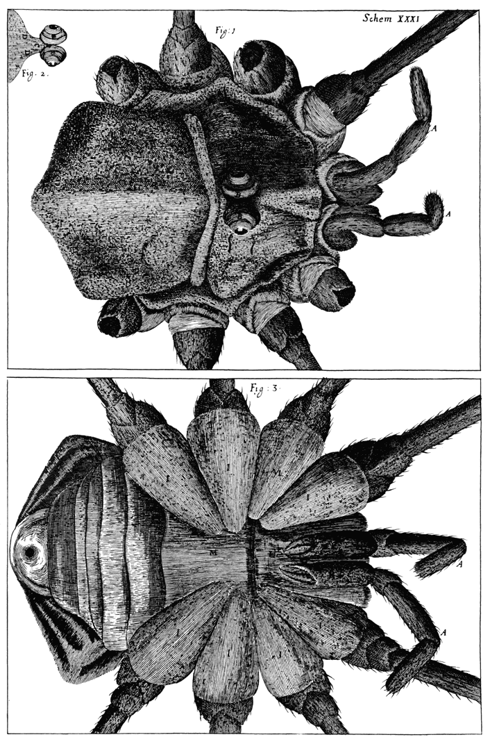 A description of its Eyes: and the sockets of its long legs: and a Conjecture of the mechanical reason of its fabrick; together with a supposition, that ’tis not unlikely, but Spiders may have the make of their inward parts exactly like a Crab, which may be call’d a water Spider.