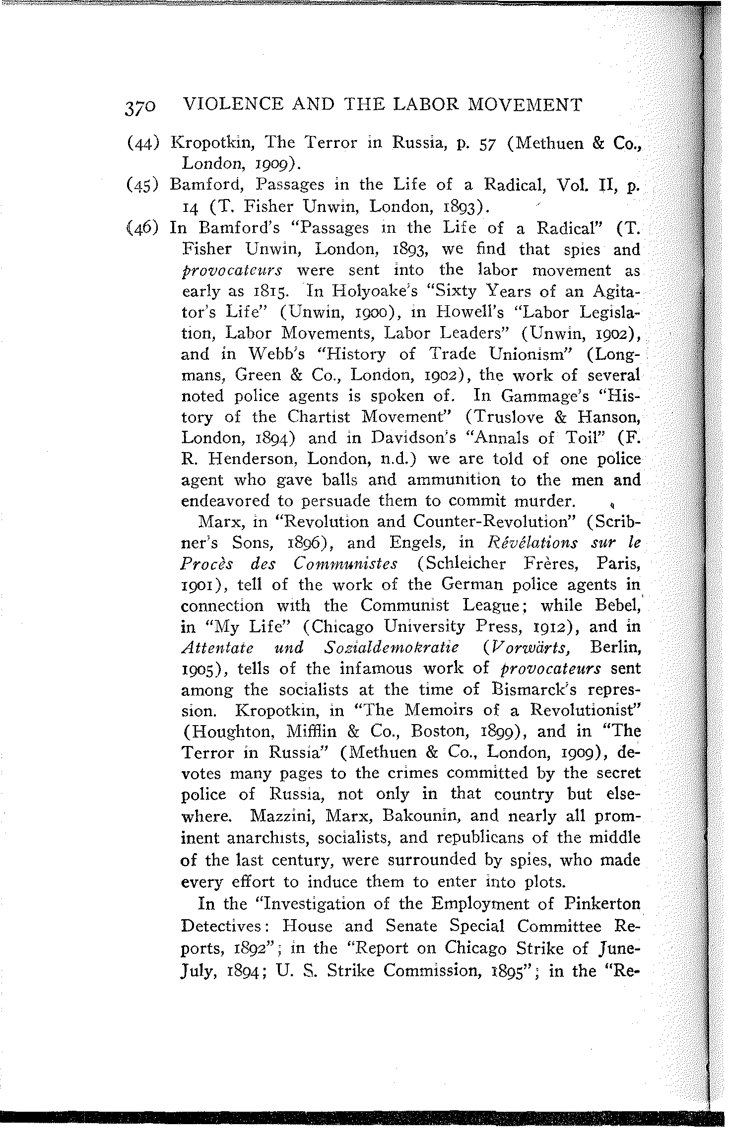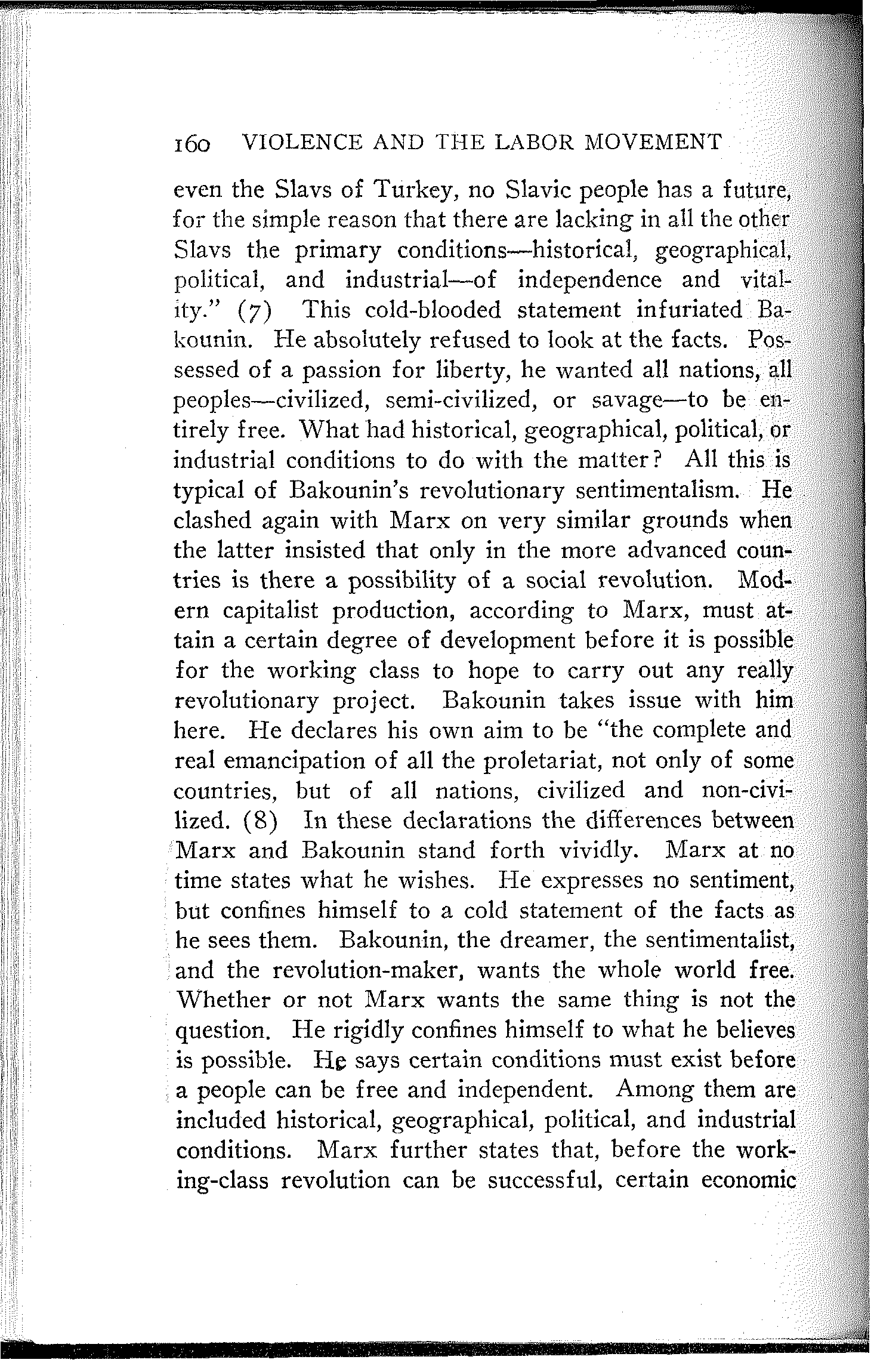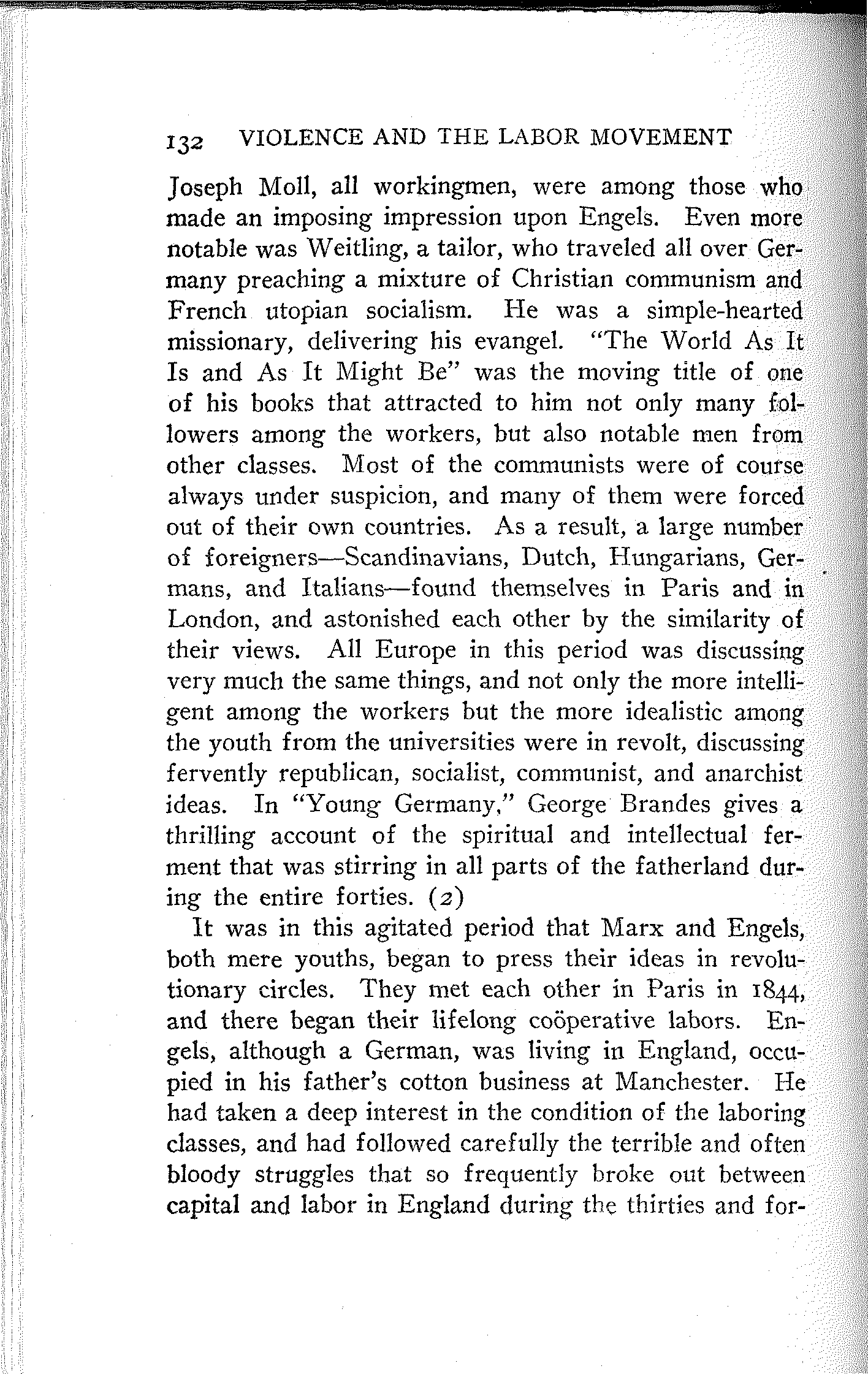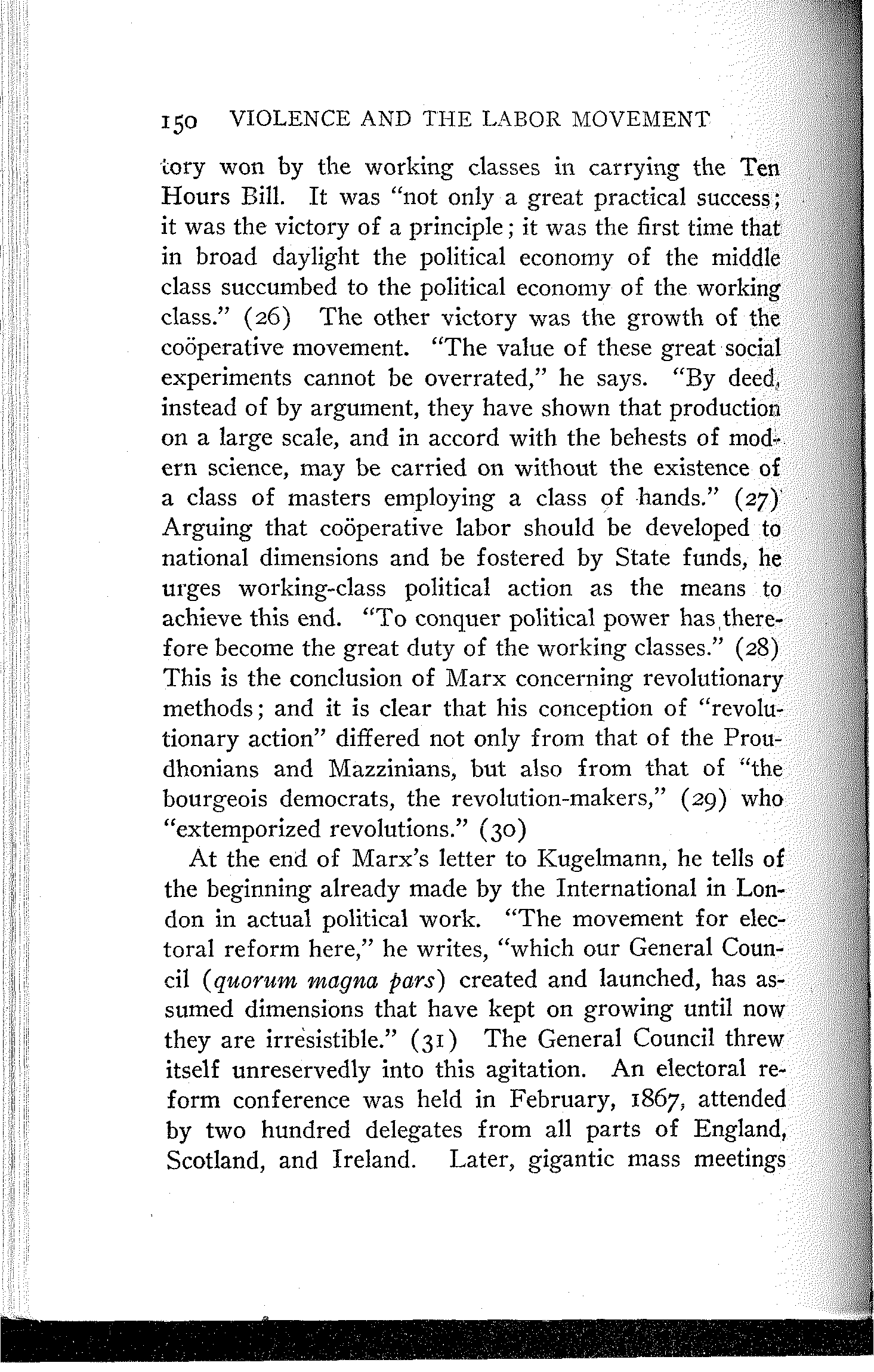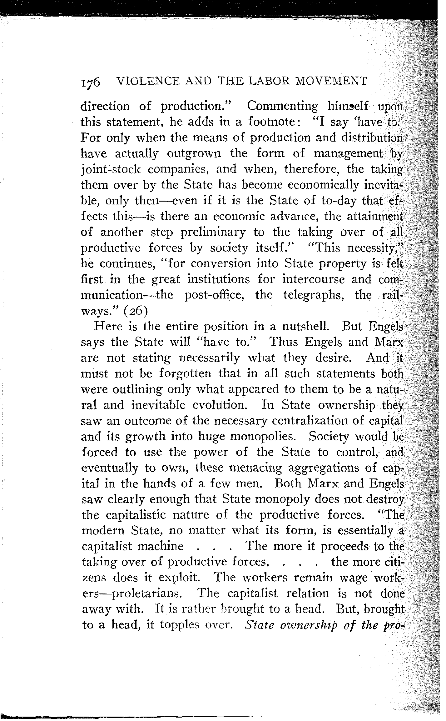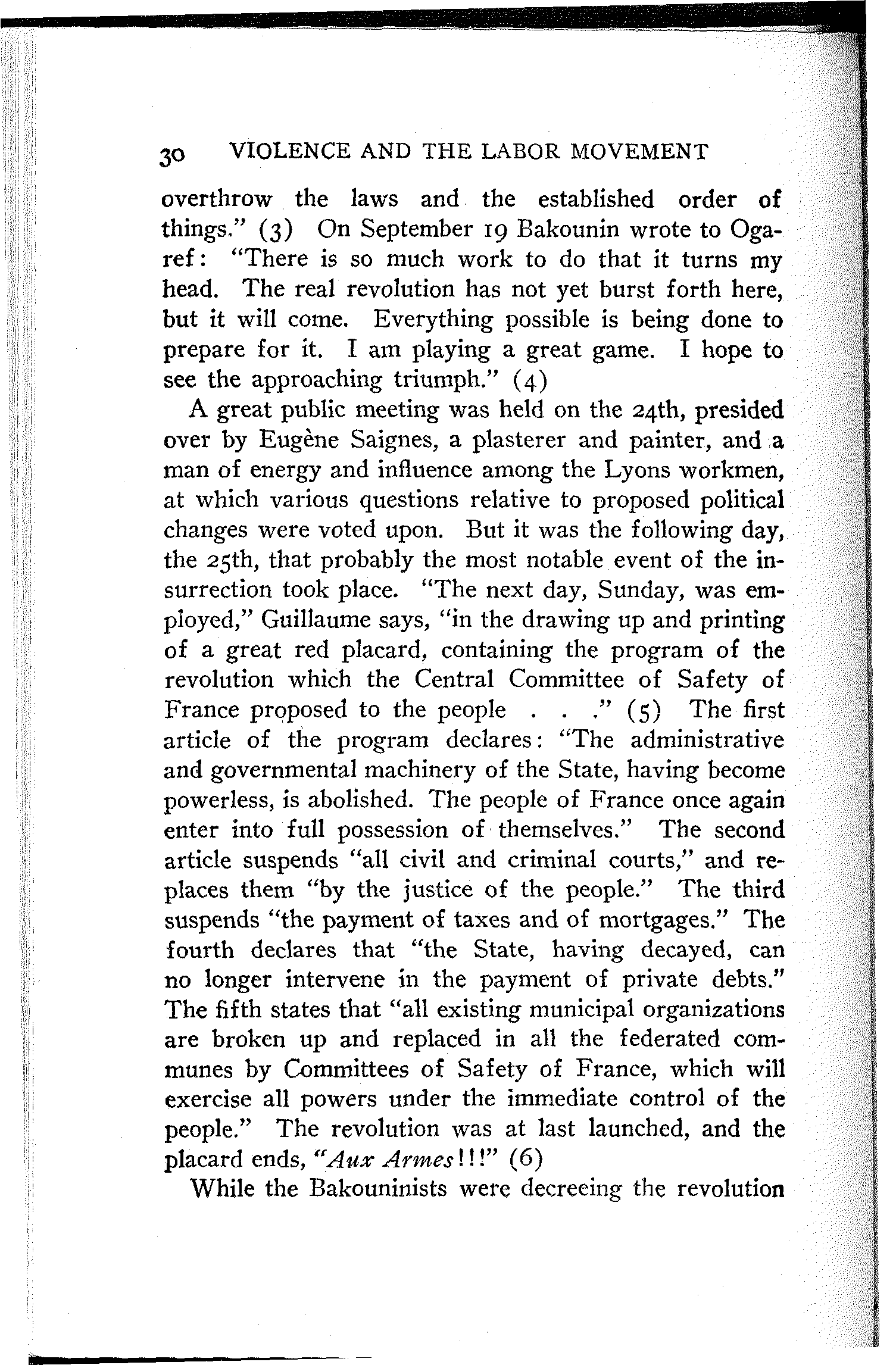This volume is the result of some studies that I felt impelled to make when, about three years ago, certain sections of the labor movement in the United States were discussing vehemently political action versus direct action. A number of causes combined to produce a serious and critical controversy. The Industrial Workers of the World were carrying on a lively agitation that later culminated in a series of spectacular strikes. With ideas and methods that were not only in opposition to those of the trade unions, but also to those of the socialist party, the new organization sought to displace the older organizations by what it called the "one Big Union." There were many in the older organizations who firmly believed in industrial unionism, and the dissensions which arose were not so much over that question as over the antagonistic character of the new movement and its advocacy here of the violent methods employed by the revolutionary section of the French unions. The most forceful and active spokesman of these methods was Mr. William D. Haywood, and, largely as a result of his agitation, la grève générale and le sabotage became the subjects of the hour in labor and socialist circles. In 1911 Mr. Haywood and Mr. Frank Bohn published a booklet, entitled Industrial Socialism, in which they urged that the worker should "use any weapon which will win his fight."[A] They declared that, as "the present laws of[viii] property are made by and for the capitalists, the workers should not hesitate to break them."[B]