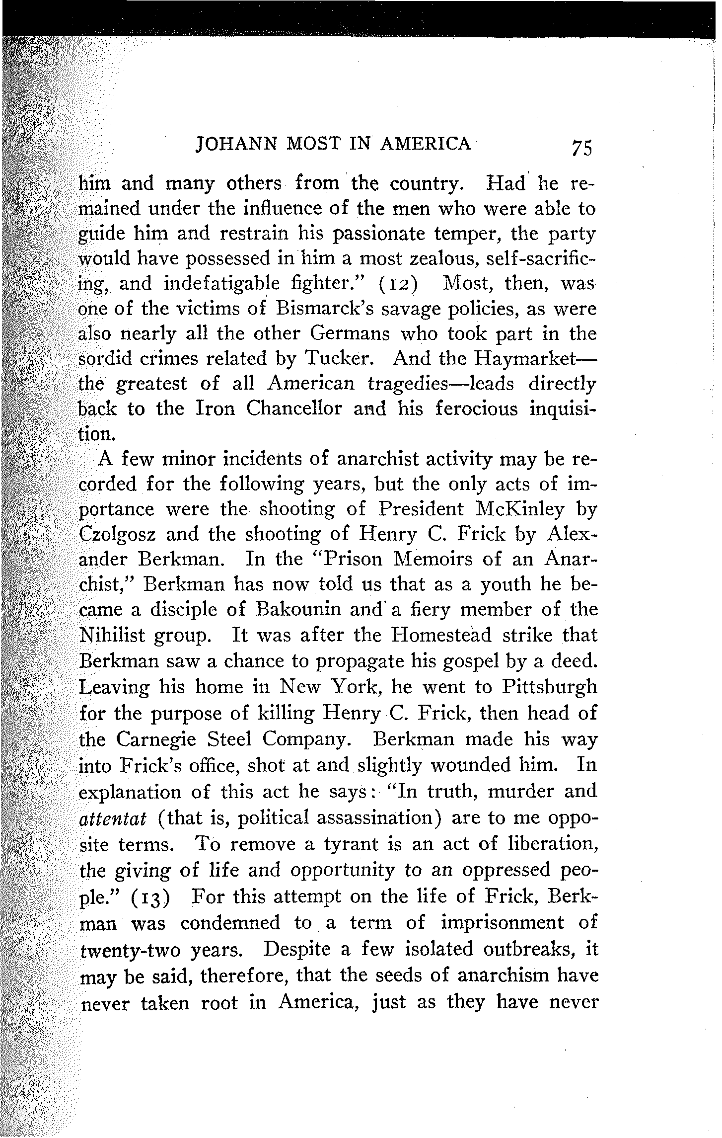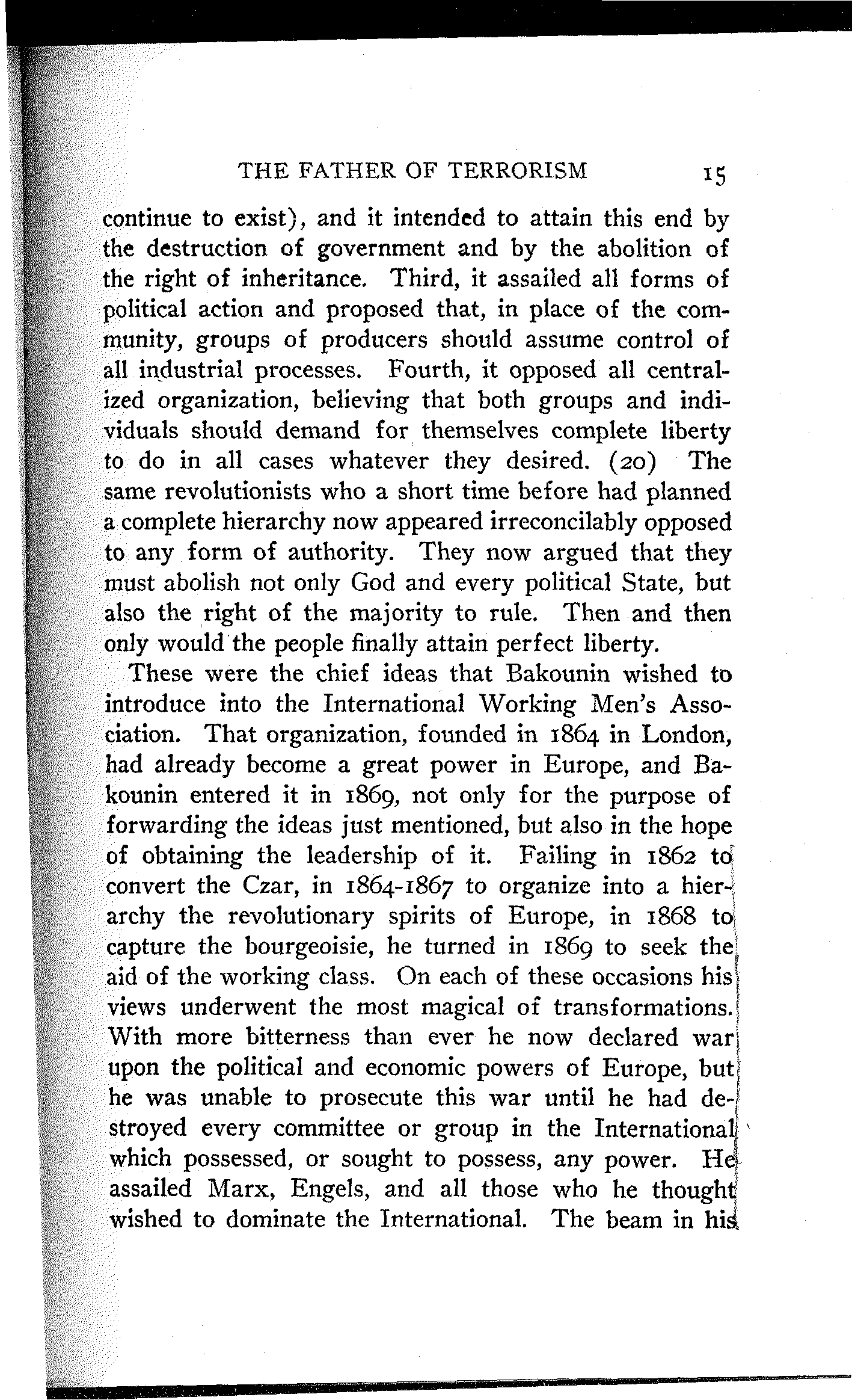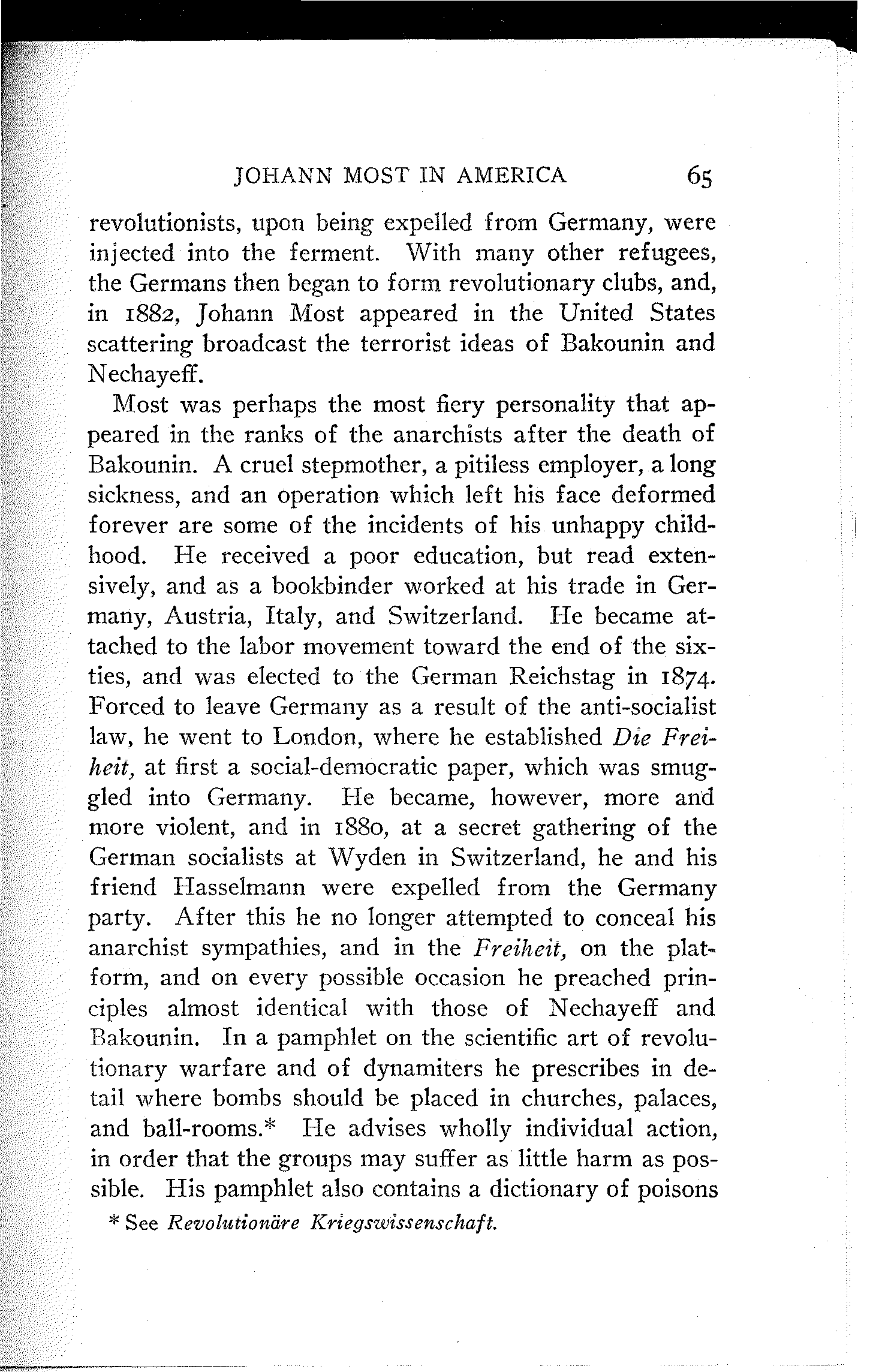 - Bakounin's terrorist ideas brought to, by Johann Most,