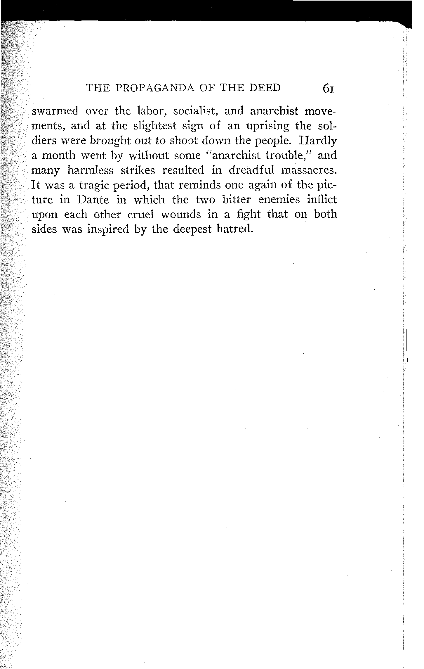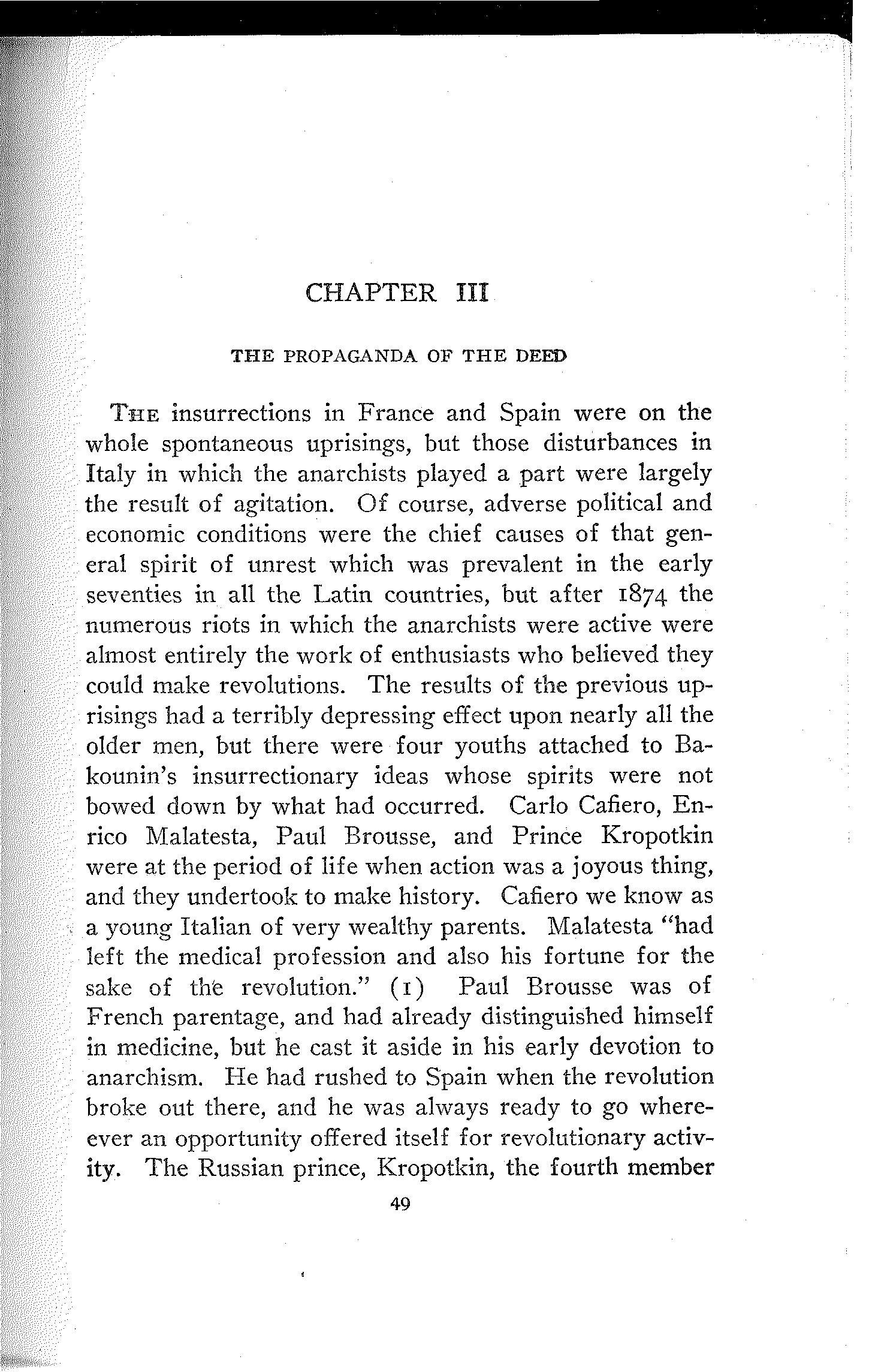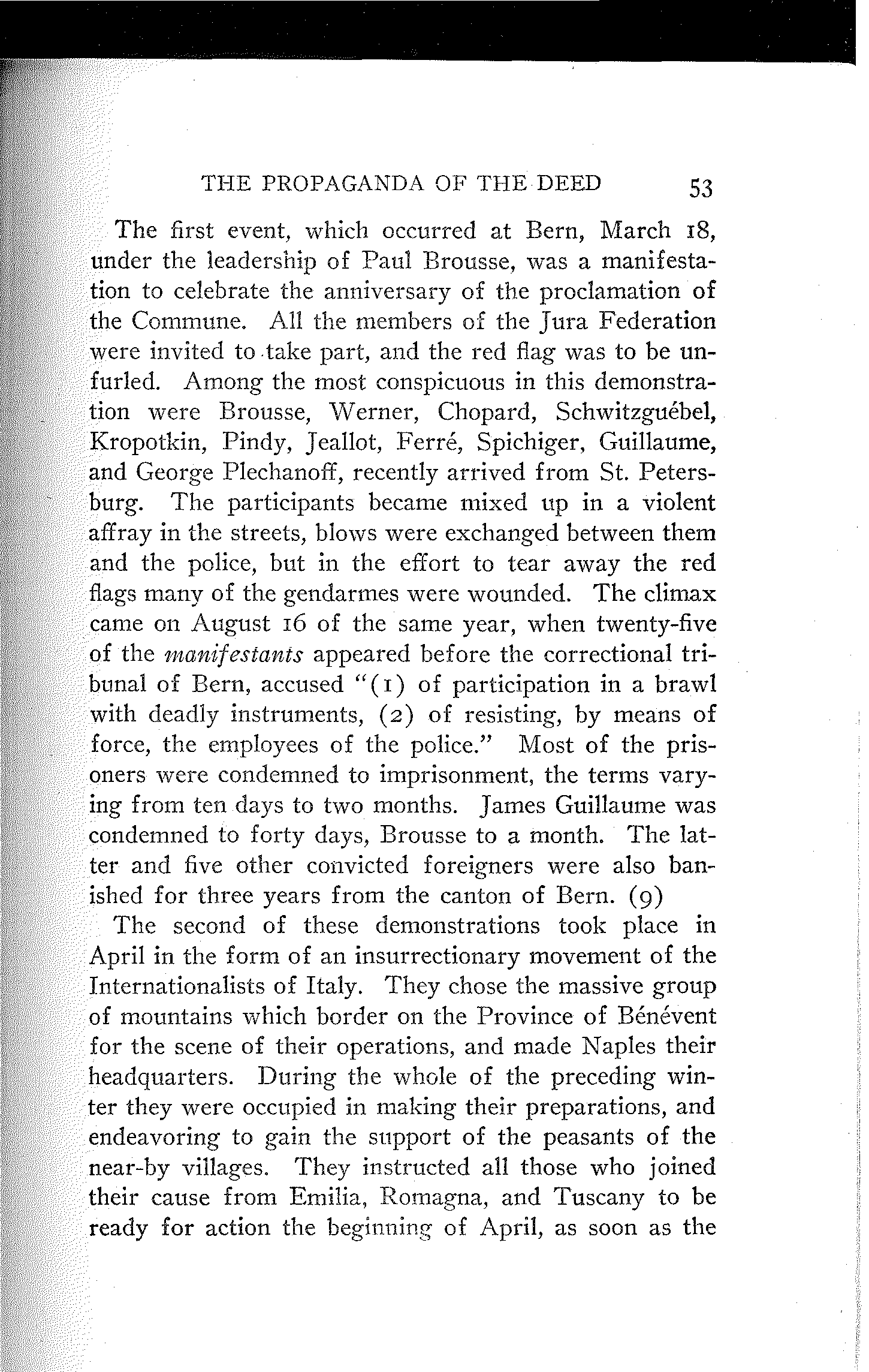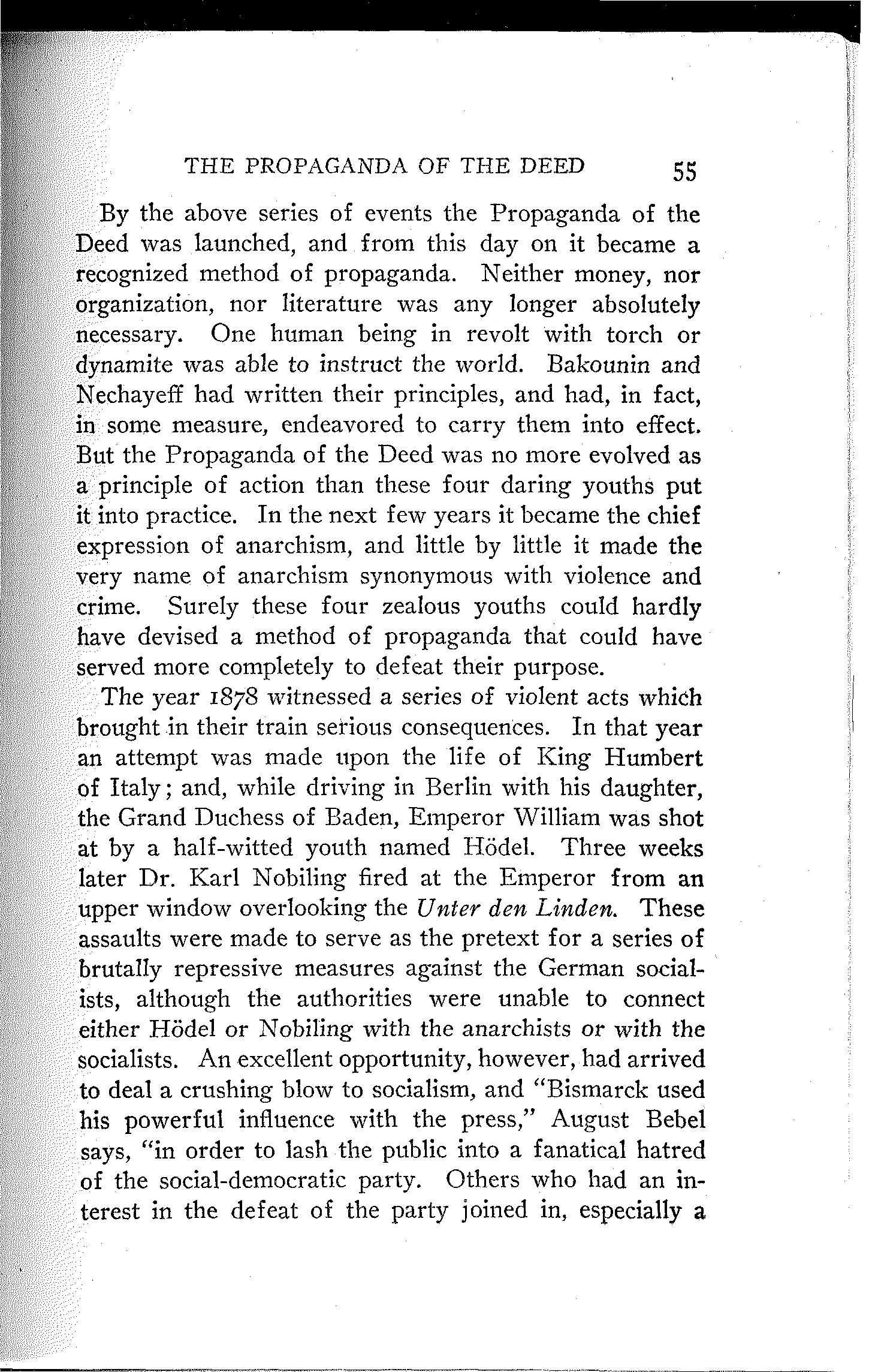 - advent of the Propaganda of the Deed, and resultant acts of violence in Italy,
