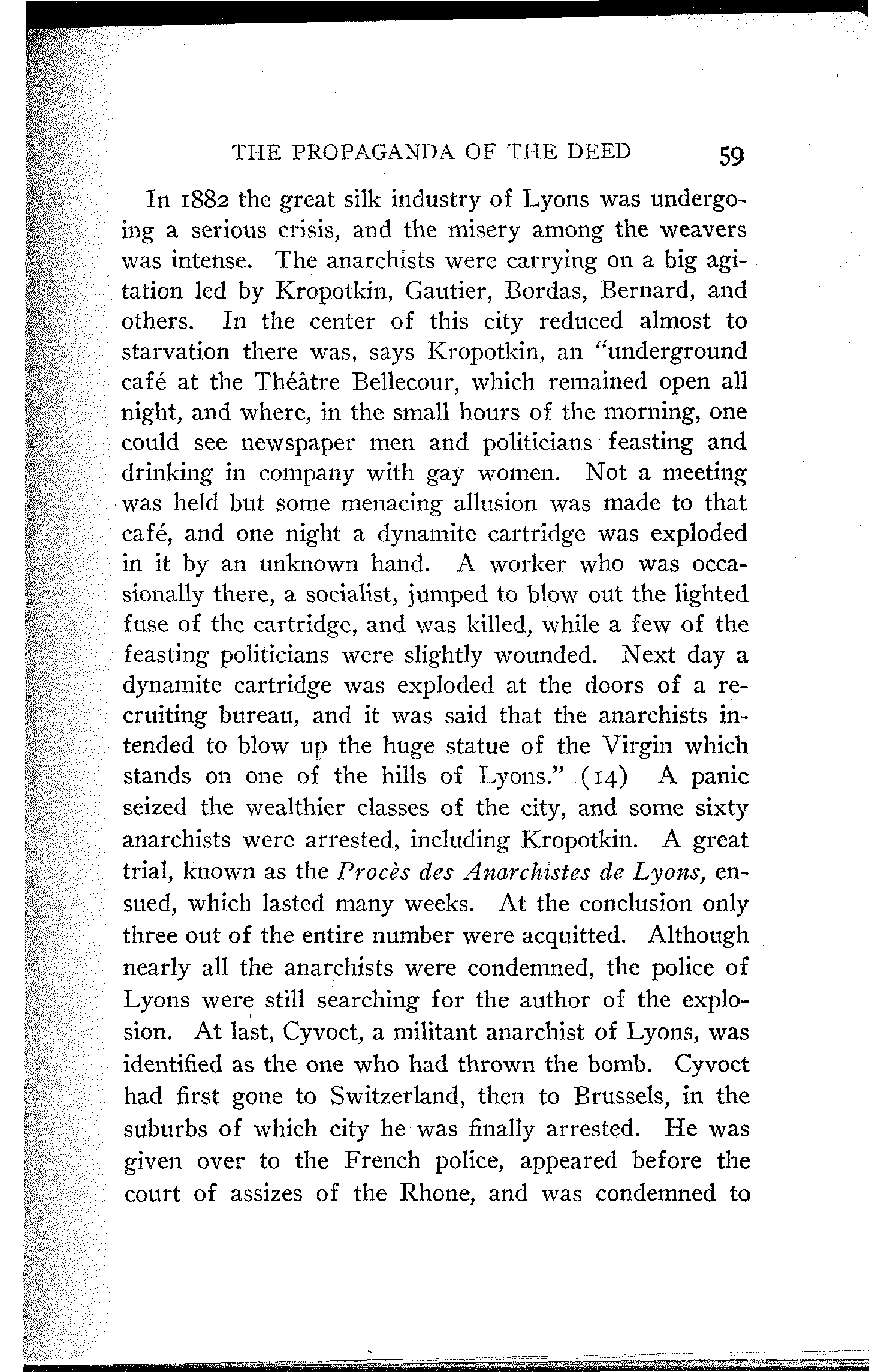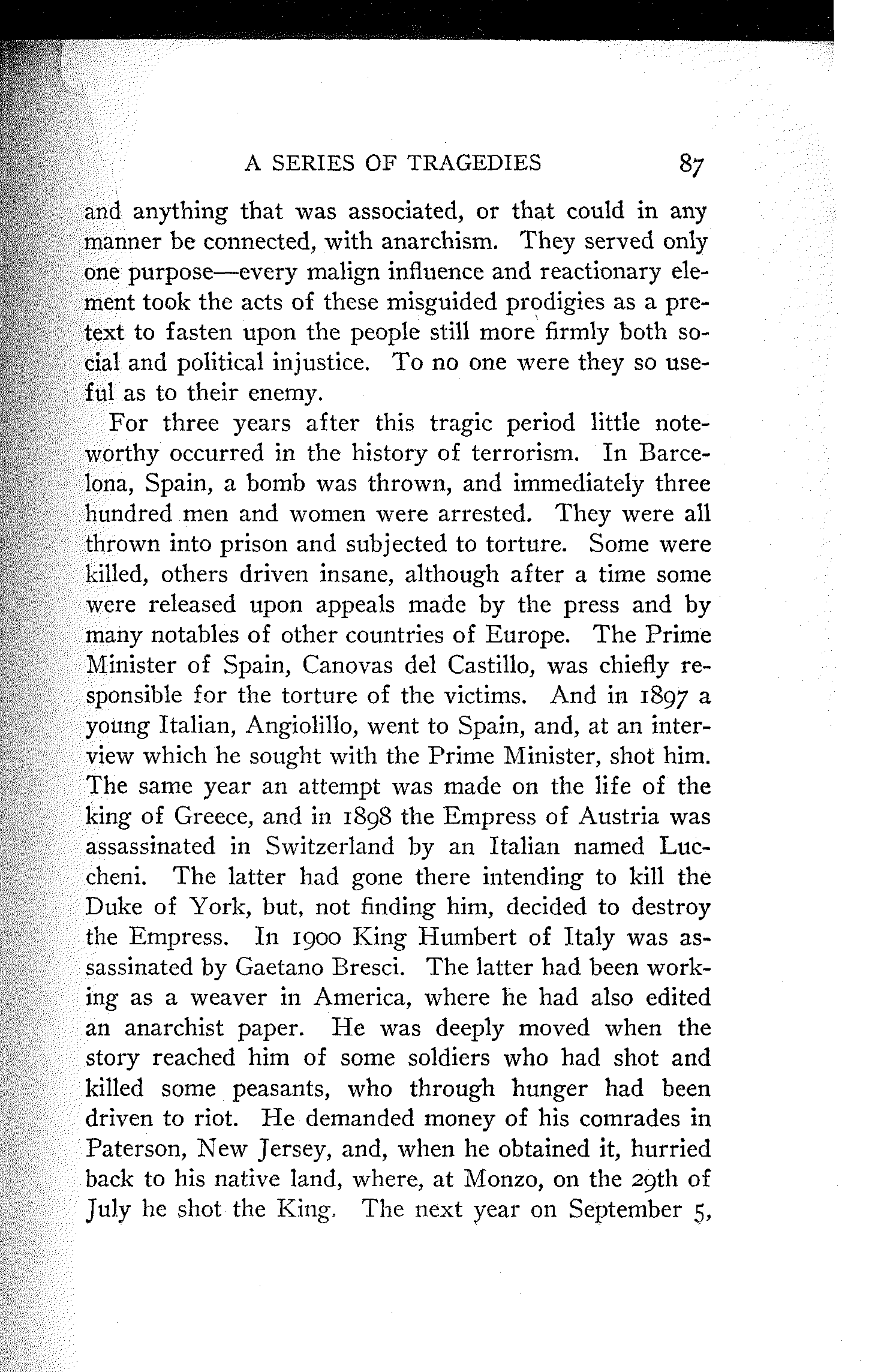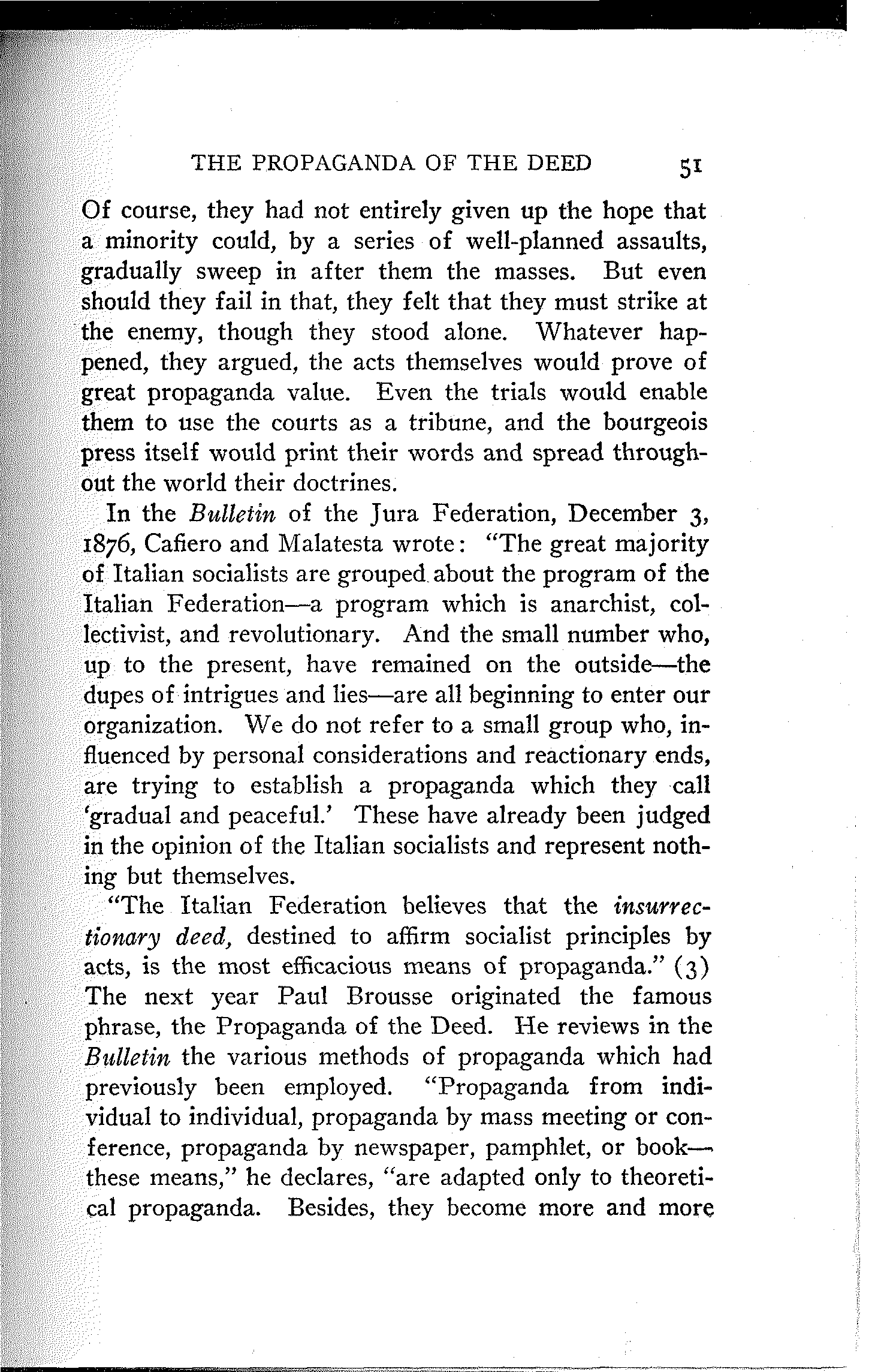 - advent of the Propaganda of the Deed, and resultant acts of violence in Italy,