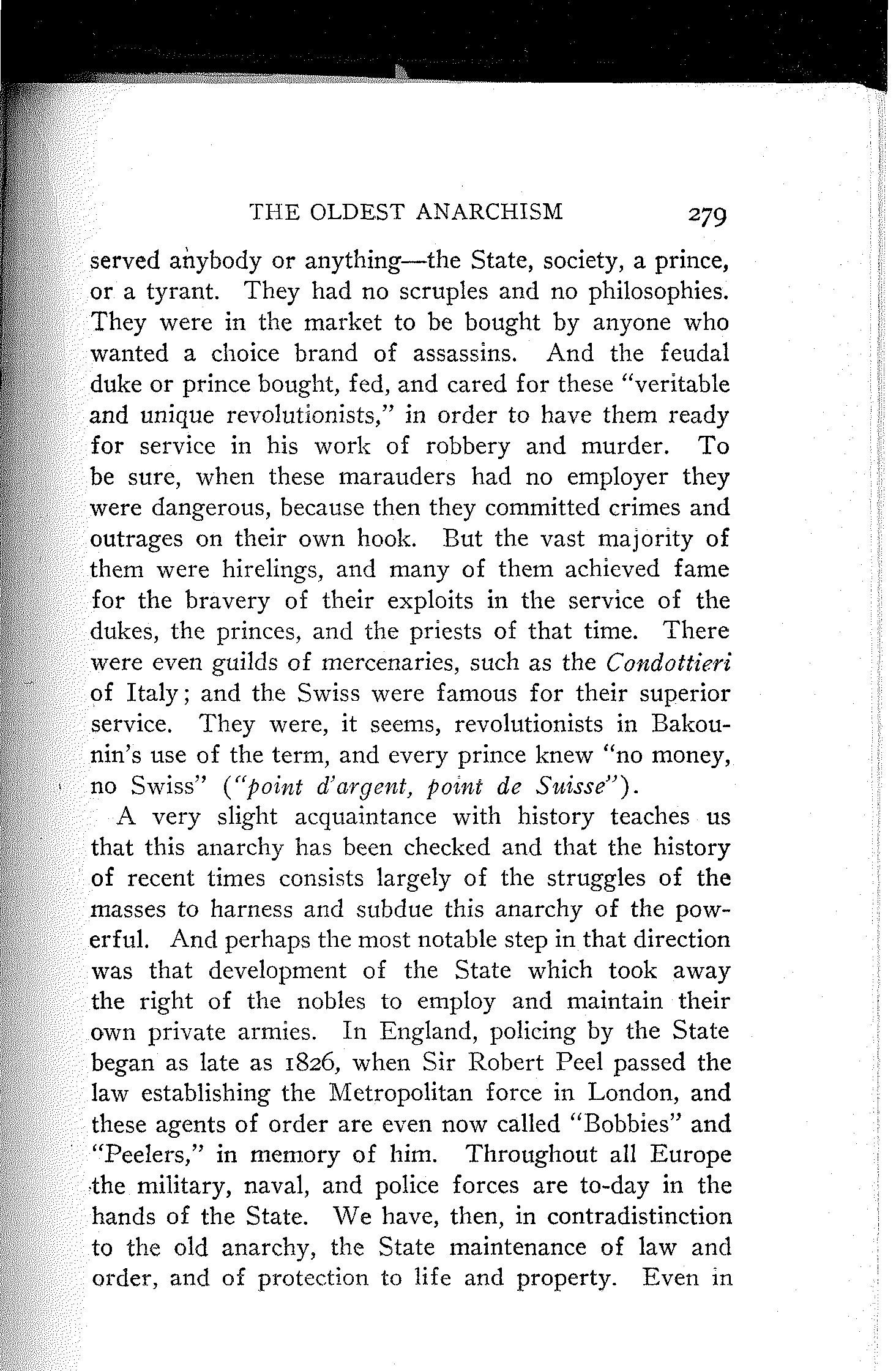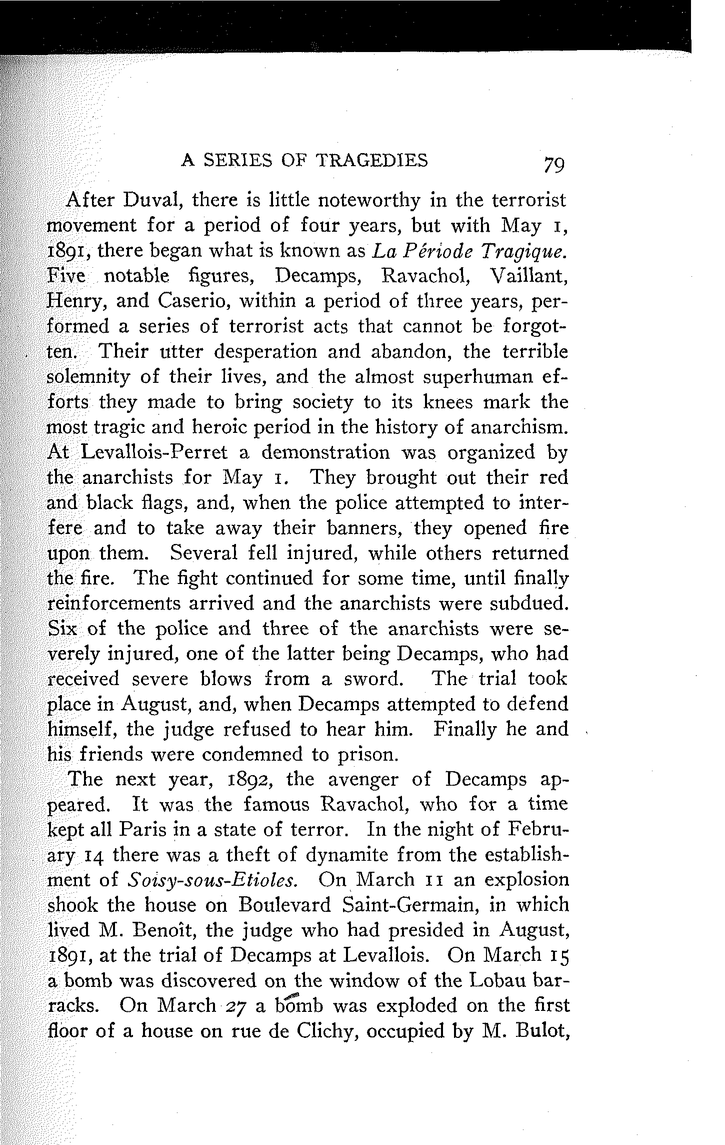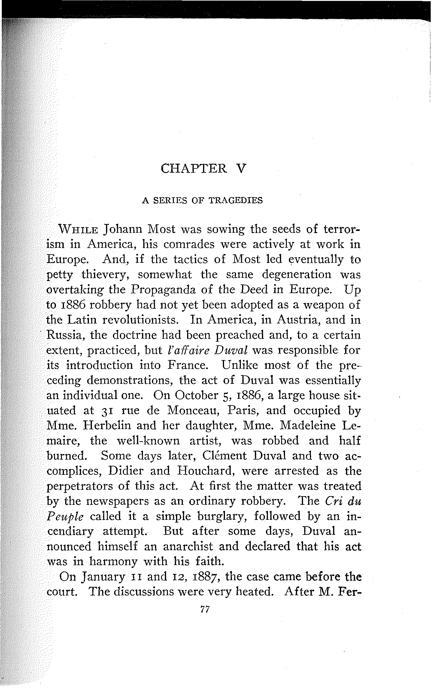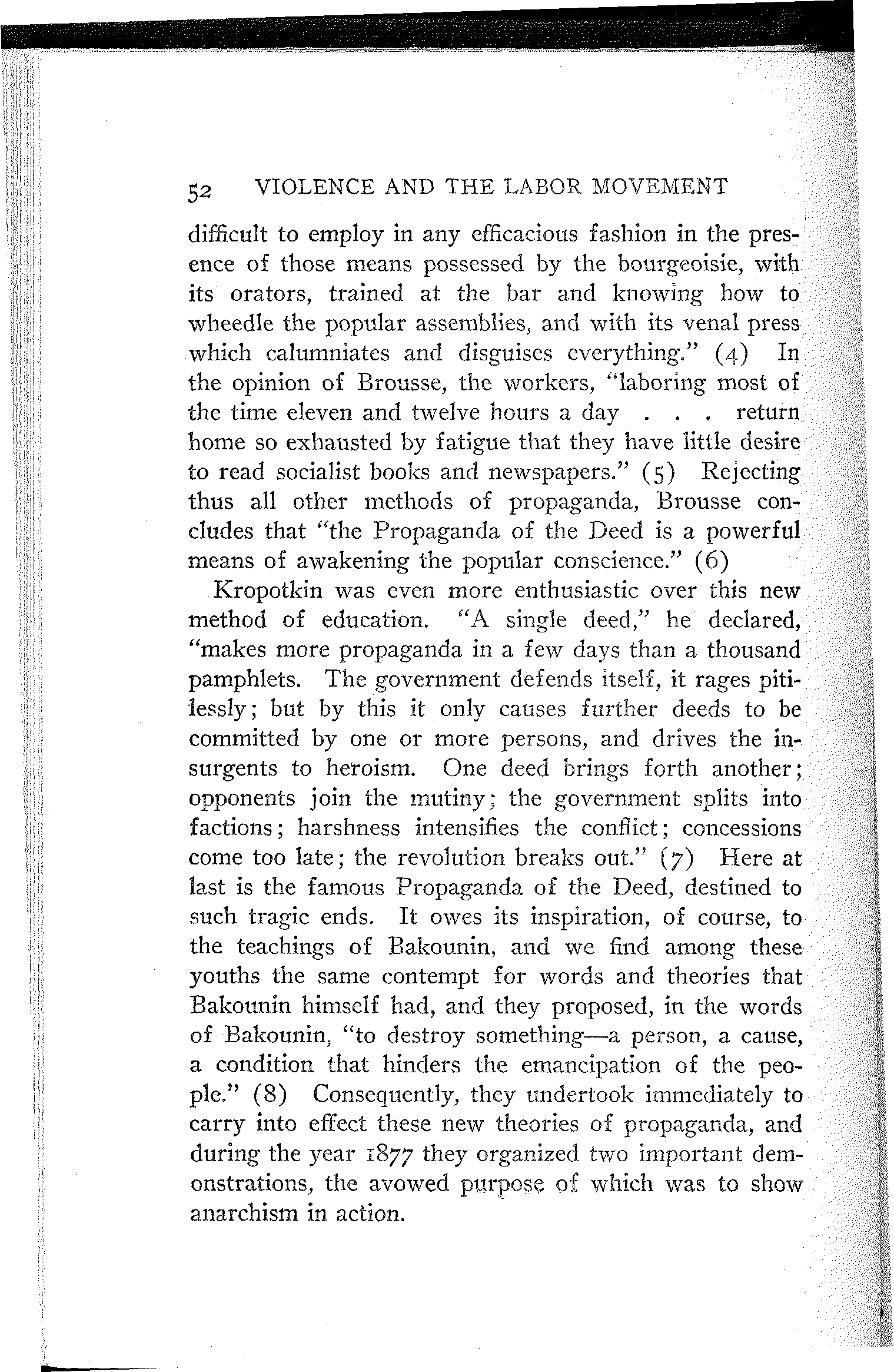 - advent of the Propaganda of the Deed, and resultant acts of violence in Italy,