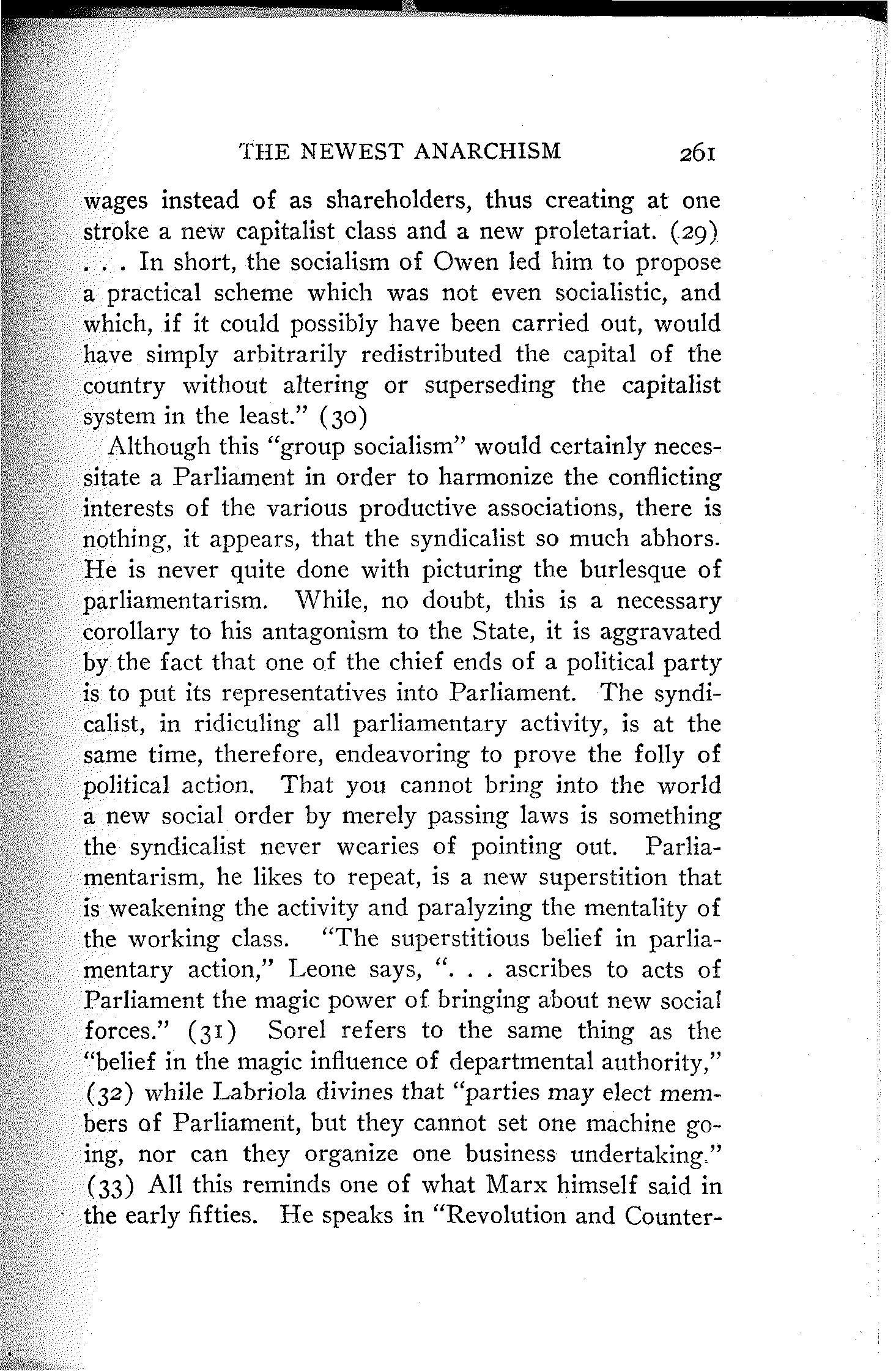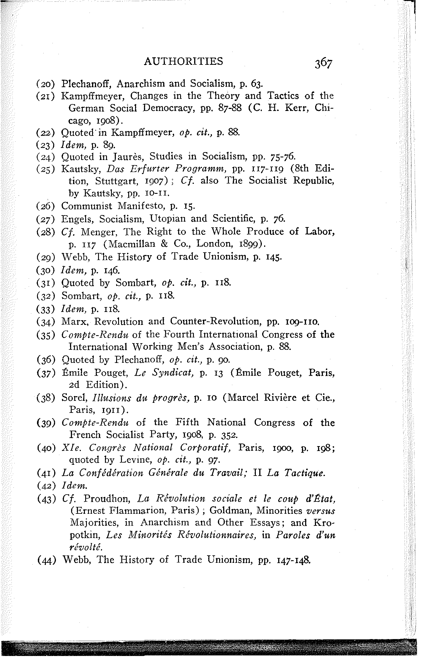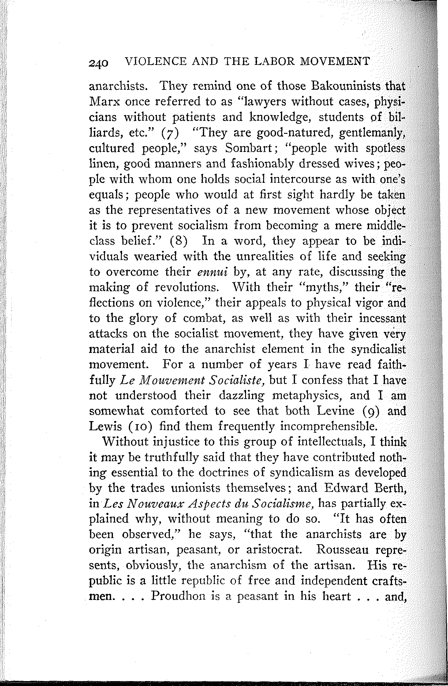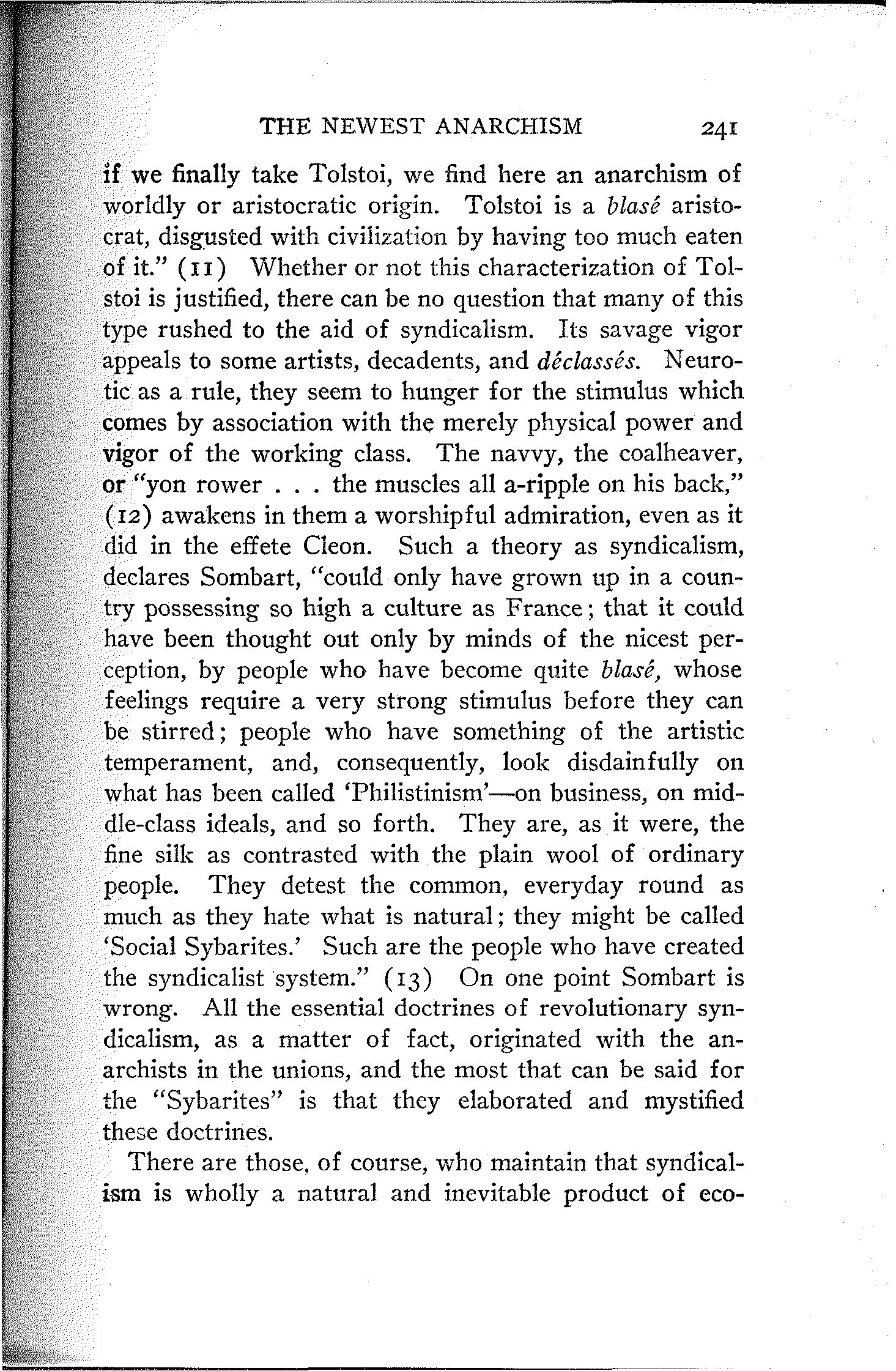 - Sombart, Werner, quoted on syndicalism and the "social sybarites,"