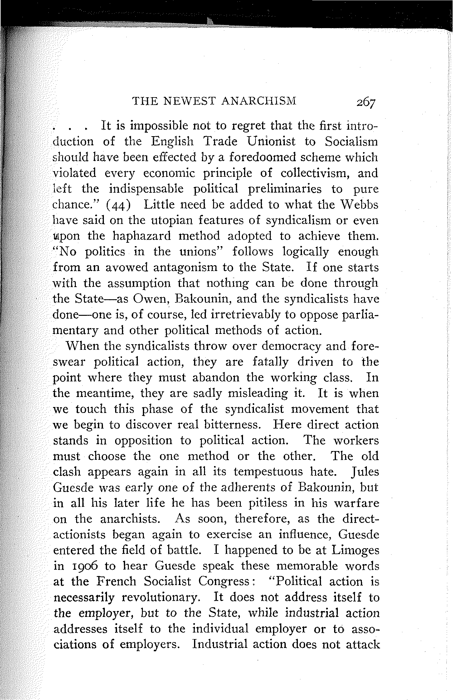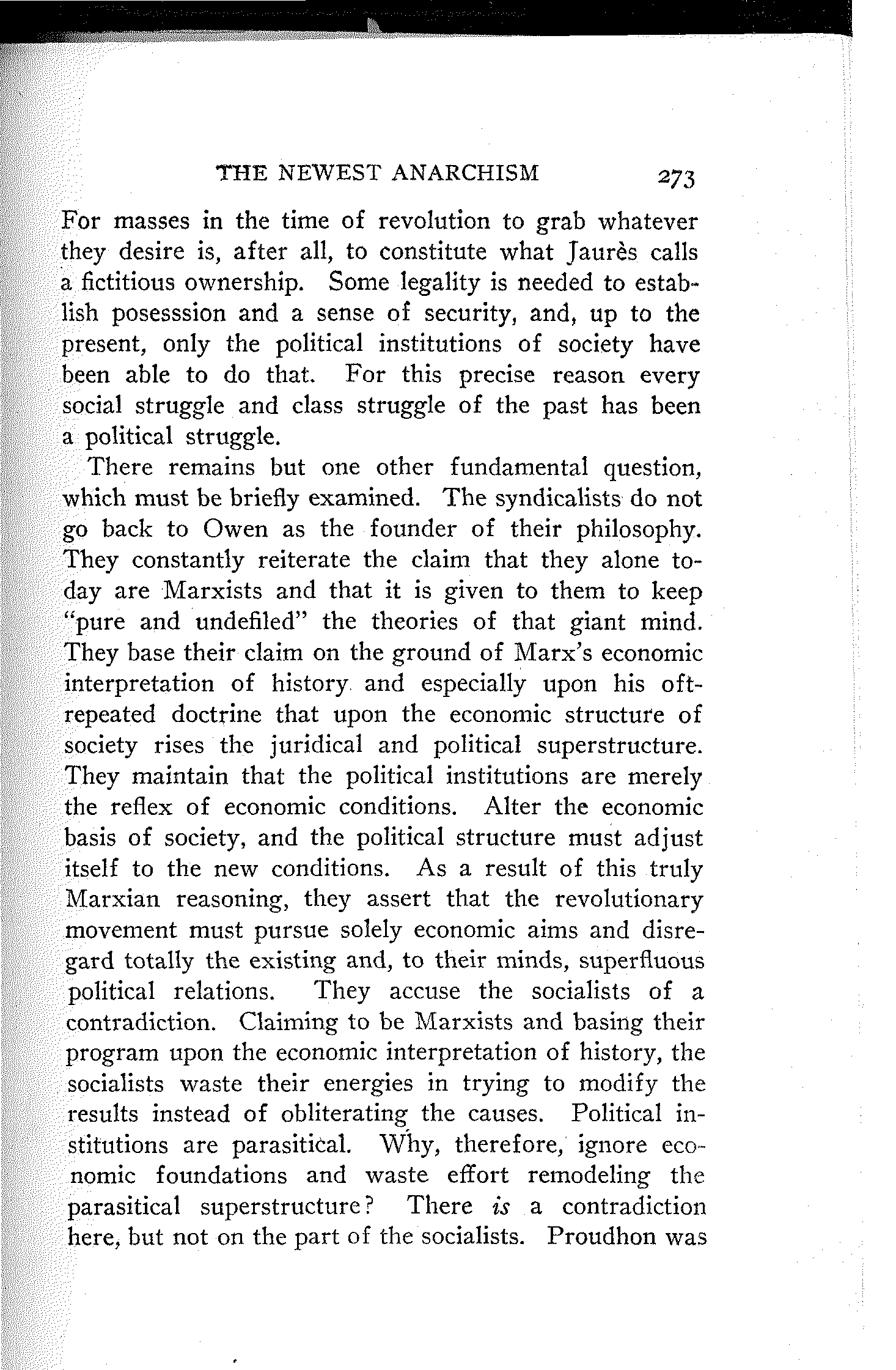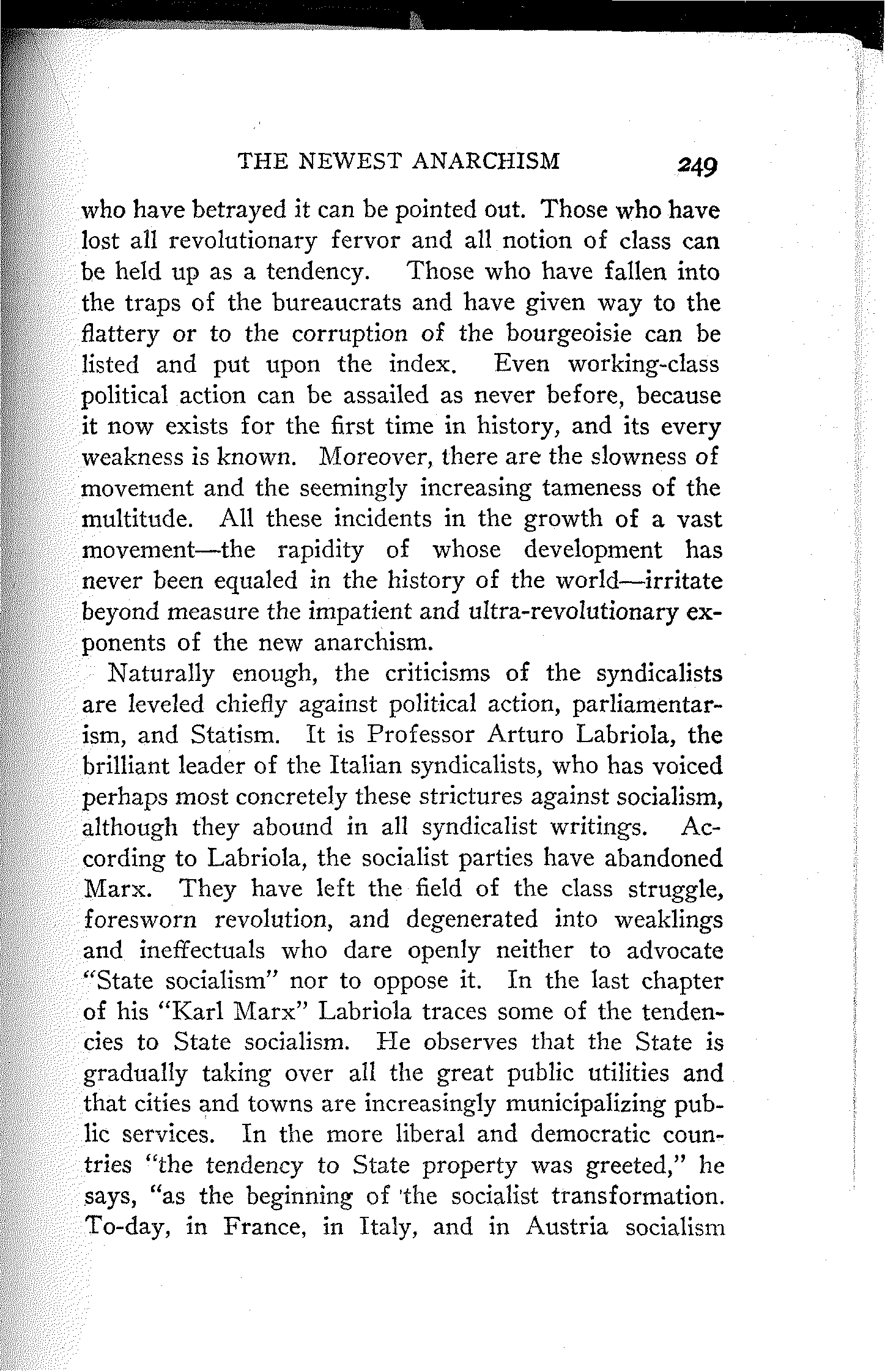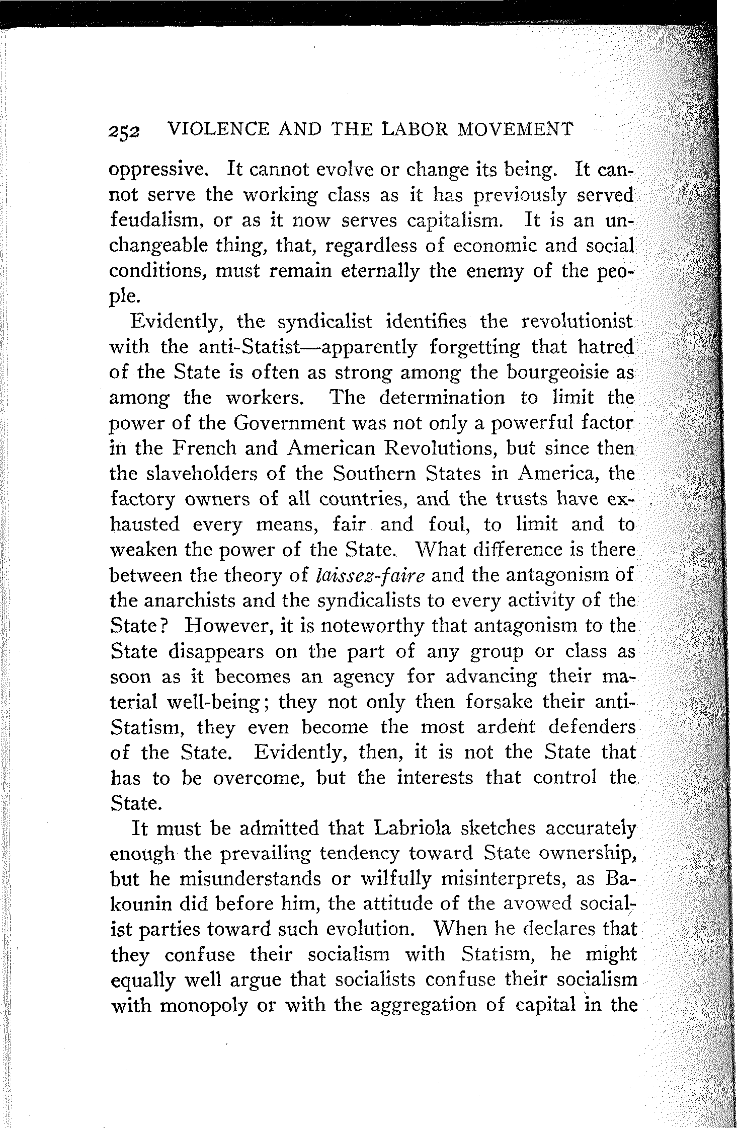 - Statism, criticism of, of the socialist party, by syndicalists,