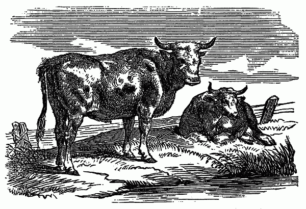 To the following works, especially, the author acknowledges himself indebted: American Farmer's Encyclopædia; Stephens's Book of the Farm; Flint's Milch-Cows and Dairy Farming; Laurence on Cattle; Allen's Domestic Animals; Youatt and Martin on Cattle; Thomson's Food of Animals; Allen's Rural Architecture; Colman's Practical Agriculture and Rural Economy; Goodale's Breeding of Domestic Animals; and Prof. Gamgee's valuable contributions to veterinary science.