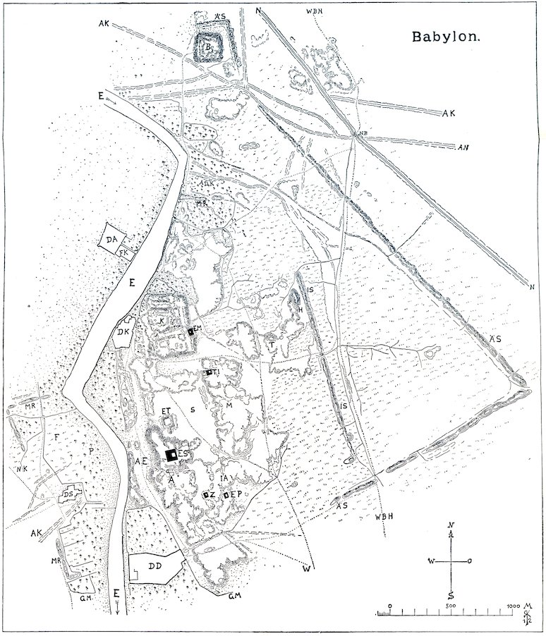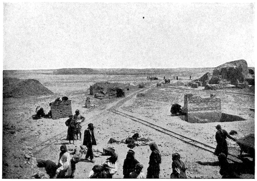 1900. The Temple of Ninmach was excavated, January-March; the centre of Amran, where we ascertained the site of Esagila, April-November; and the centre of the Principal Citadel, June-July. The south-east part of the Southern Citadel as far as the throne-room with the ornamental and enamelled bricks was begun in July and continued till July 1901, while the following up of the Procession Street in the plain continued till November 1902.