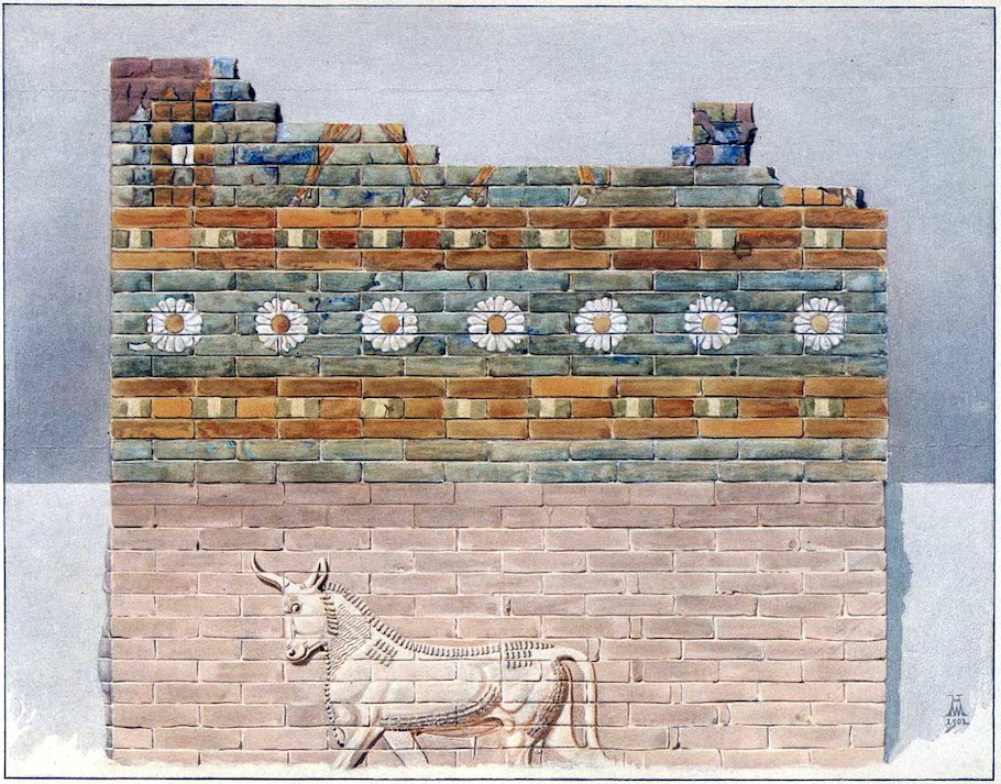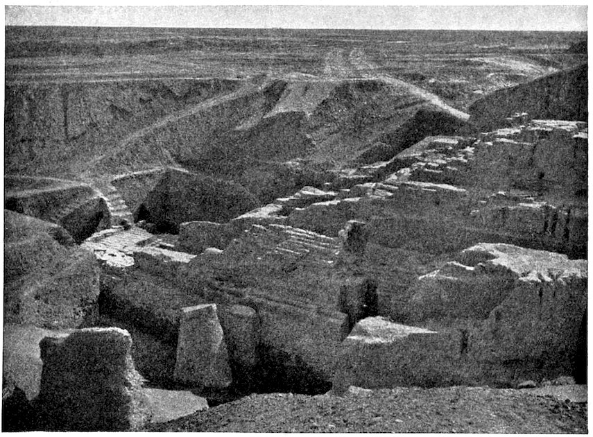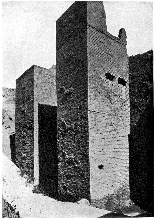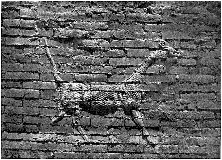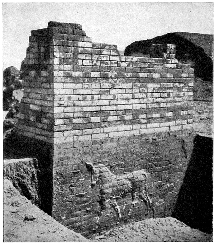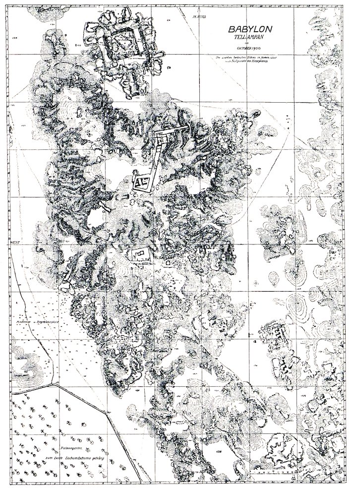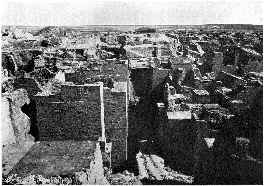 viThe excavations were commenced on March 26, 1899, on the east side of the Kasr to the north of the Ishtar Gate. At my first stay in Babylon, June 3–4, 1887, and again on my second visit, December 29–31, 1897, I saw a number of fragments of enamelled brick reliefs, of which I took several with me to Berlin. The peculiar beauty of these fragments and their importance for the history of art was duly recognised by His Excellency R. Schöne, who was then Director-General of the Royal Museums, and this strengthened our decision to excavate the capital of the world empire of Babylonia.