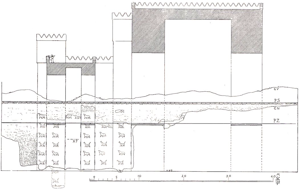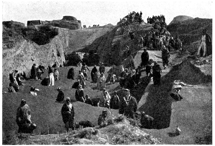 1905. The inner city wall was partially opened up, January-March. The excavations, by order of the Turkish Government, were temporarily deferred, April 7–June 23; the two mud walls to the north of the Southern Citadel were commenced in June, and the Sargon wall with the beginning of the Arachtu wall was verified.
