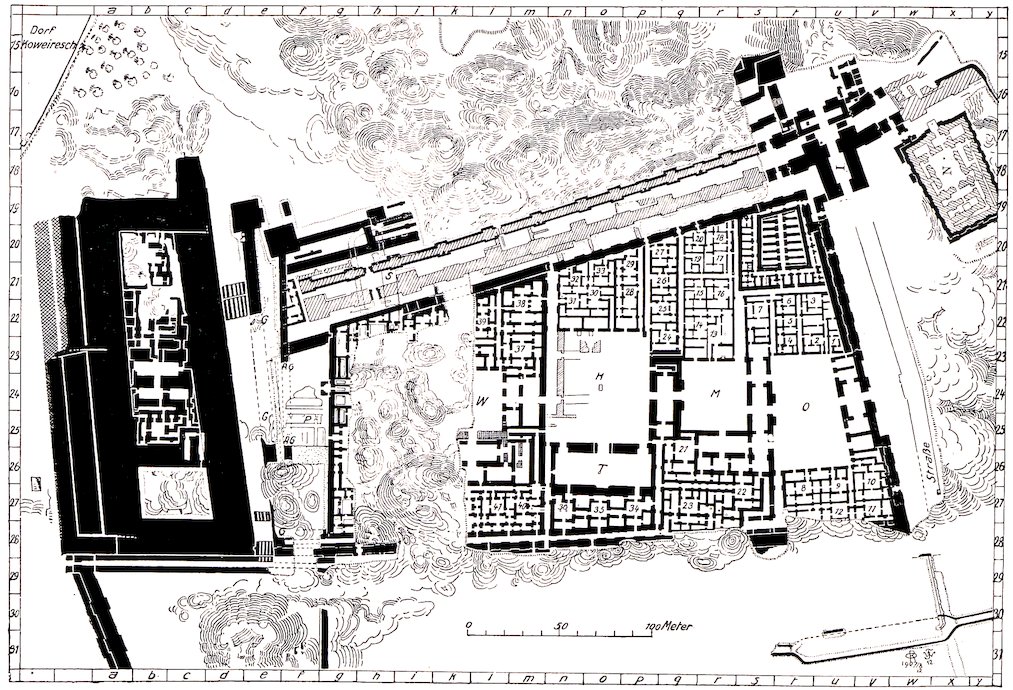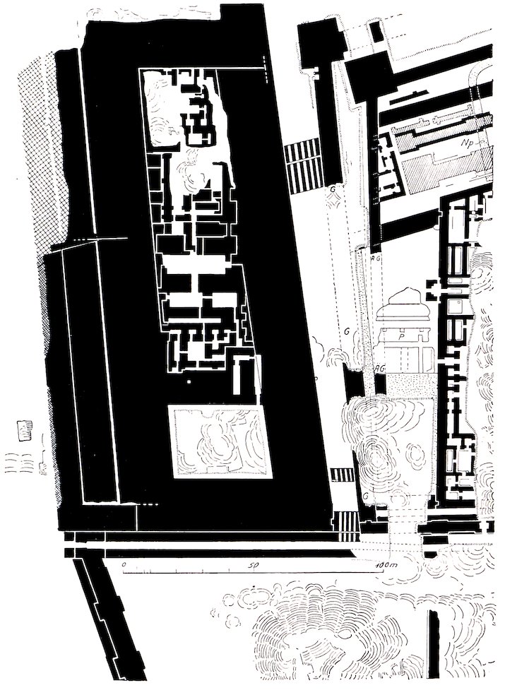 1912. Besides proceeding with the digging at the north-east corner of the Kasr and at Merkes, the excavation was begun of the buildings with the great surrounding wall in the west of the Southern Citadel which had been cut by the exploration trench of 1907.